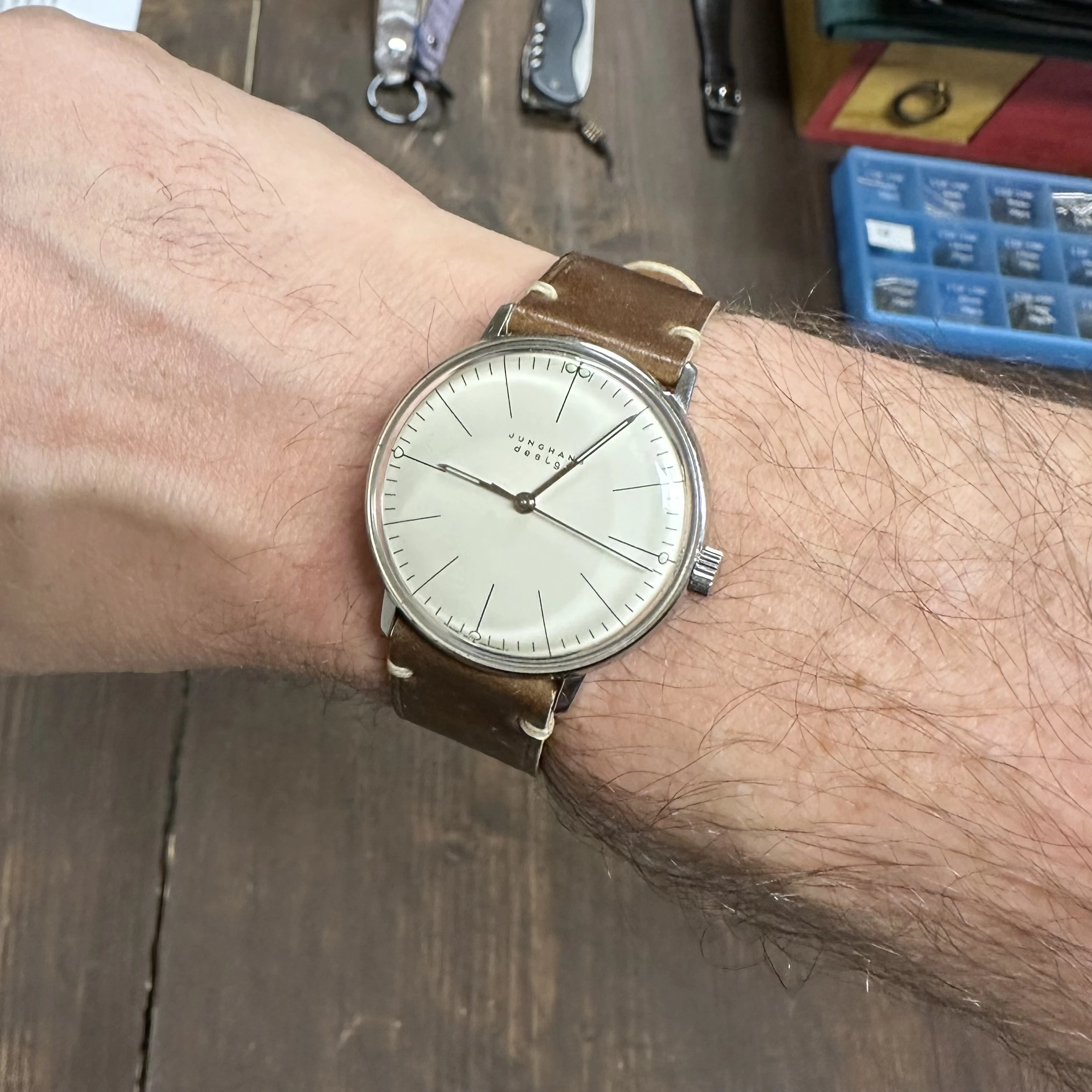 | Junghans Max Bill Watch 27/3702 Manual Winding 34mm Leather Strap Used in Box michaelw24th (10003) |