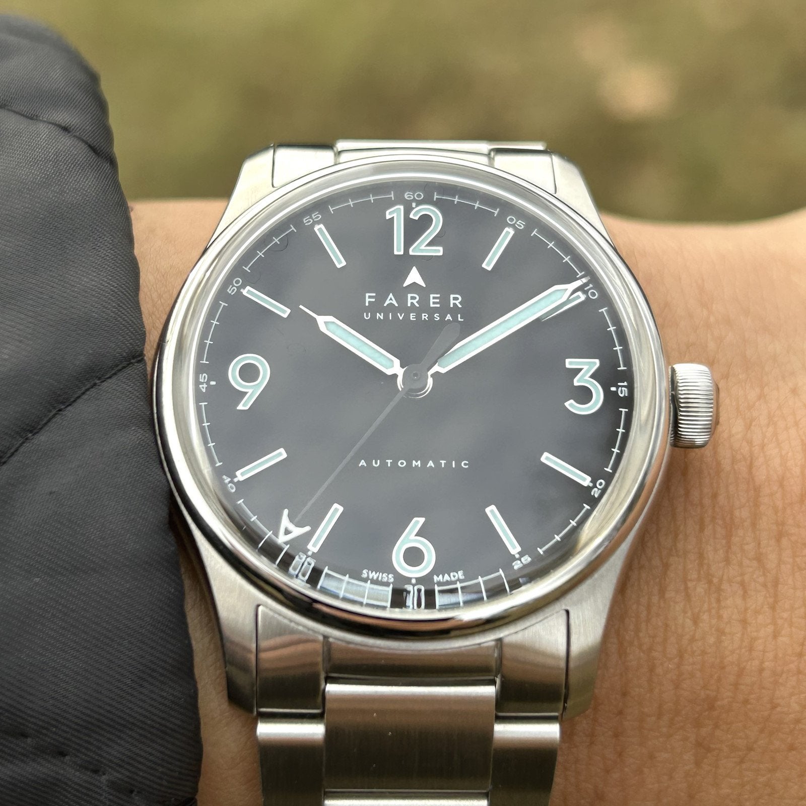 For sale is my Farer Discovery Black Velvet 36mm with the Farer classic steel bracelet.