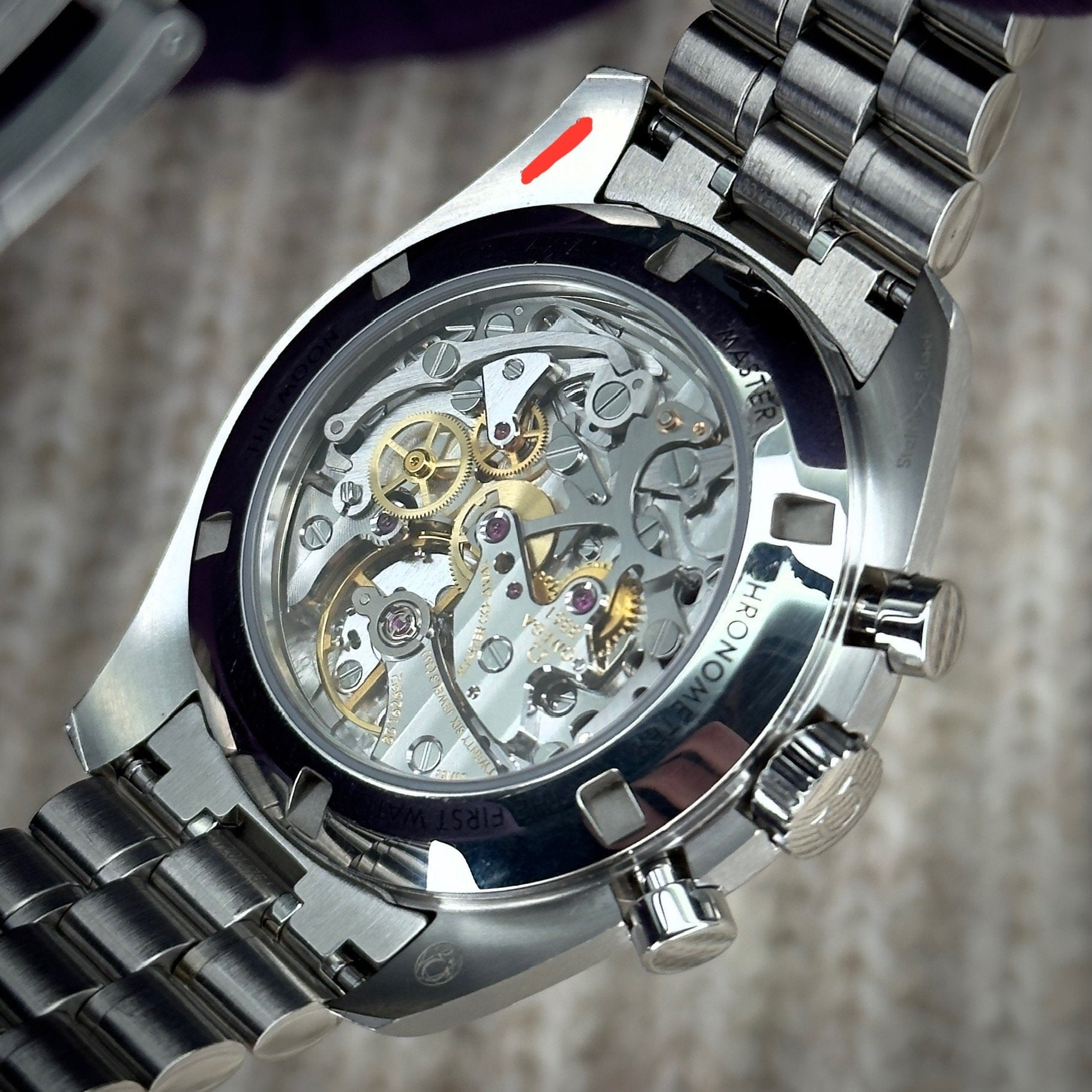 The sapphire version showcases the new amazing 3861 movement through the caseback. It would be easy to get lost in the details.