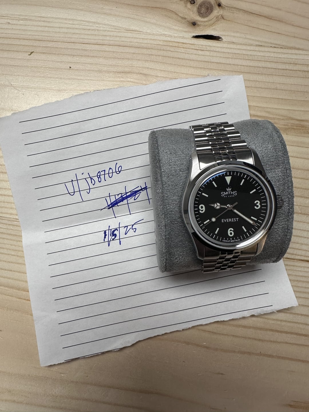 This is a catch and release. Bought this new in December and only worn twice to the office. Watch is incredible but I recently jumped on a birth year Rolex and need to let this go to help refill the coffers. Need to list at least 1 more watch but this was the last one in, so it’s the first one unfortunately. More Images: [https://imgur.com/a/smiths-prs-25-jubilee-BhqLxnQ](https://imgur.com/a/smiths-prs-25-jubilee-BhqLxnQ) The dial reminds me of the famed 1016 but also has It’s own charm. The jubilee dresses it up quite nicely, alongside the 36mm size. Finishing is great for the price point and the watch is pretty much in near perfect condition. Happy to hop on a Facetime etc to chat and show the watch. I am also happy to share references from here on WatchEx. $599 - Venmo, Wire, PayPal F&F with good references. No Trades. Negotiable but my preference is to Ship to a FedEx Pickup Center in Your area if at all possible. CONUS only.