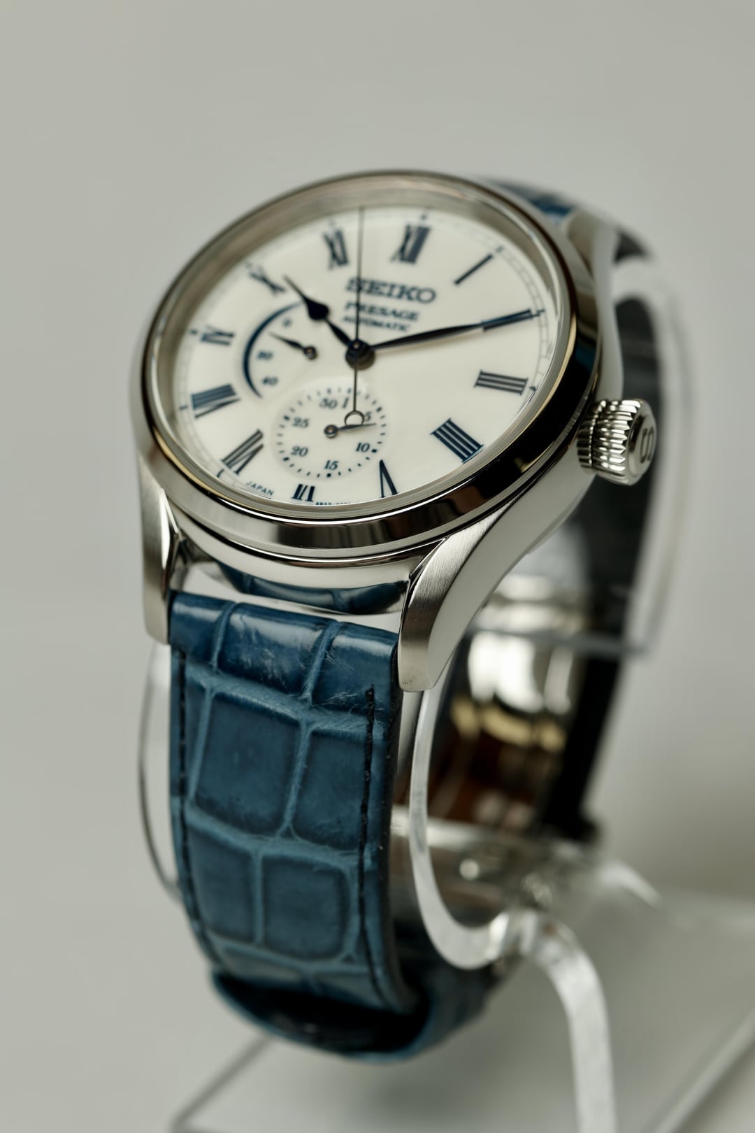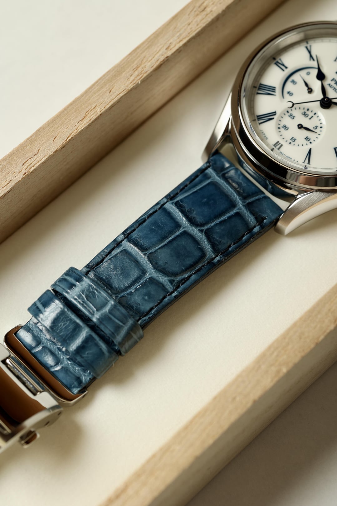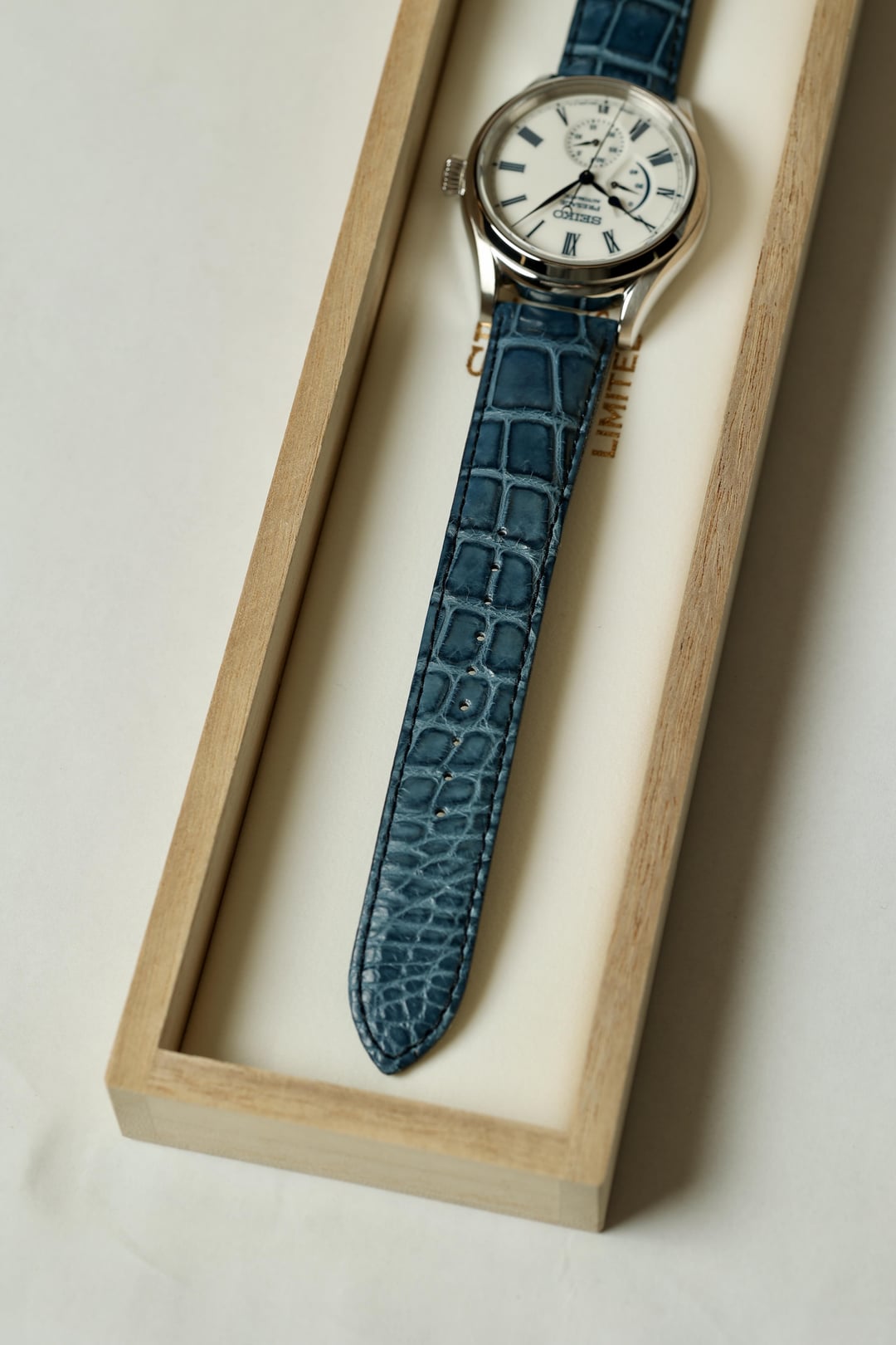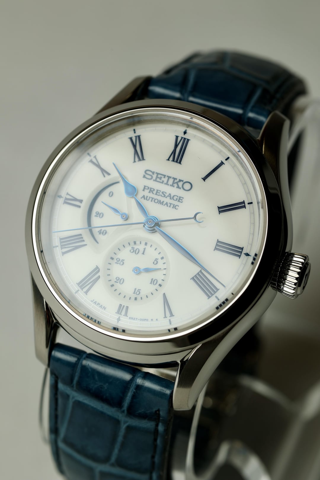 For Sale: JDM 2021 Seiko Presage Arita Porcelain SARW053 (internationally known as SPB171) This watch, limited to just 2000 pieces, is not just a timepiece; it’s a story, a piece of art, and a slice of history. Dial: Inspired by the Heian Period’s (794-1185 AD) noble tradition of viewing the moon’s reflection on water, known as Suigetsu. The Arita porcelain dial is crafted using a 400-year-old technique from Arita, Japan, involving hand-painting and multiple firings at high temperatures. This results in a distinctive, glossy finish, making each dial unique with its own subtle differences. The glossy white finish, accented with blue indexes and handset, is in fantastic condition—a true work of art! Crystal: Both the front and back crystals are flawless and present beautifully. Case: The 40.6mm case is in very good to excellent condition. There’s a very light mark at 9 o’clock and some light scuffing on the case back (see photos and video). On wrist, it looks stunning! Movement: The automatic Seiko 6R27 movement is winding and setting perfectly. The date complication and power reserve indicator function as designed. Service history is unknown. Band: The original blue alligator strap with deployment clasp shows very light wear, and the clasp is in excellent condition. Accessories: Includes inner and outer boxes, warranty card (originally purchased from Takashimaya Nihonbashi Watch Maison in Nov 2021), manual, and an additional Seiko watch box. Price: Asking $1350 which includes overnight shipping to your local FedEx Office anywhere in the CONUS. Since it is being shipped to a secured Fedex facility, it is fully insured against damage, loss or theft. Payment via Zelle and Venmo friends and family. No returns unless misrepresented. As you can see in the photos, video, and description, it certainly will not be. [Time Stamp](https://imgur.com/a/OORrlhz) [Video showing overall condition of watch](https://imgur.com/a/K0gvMpn)