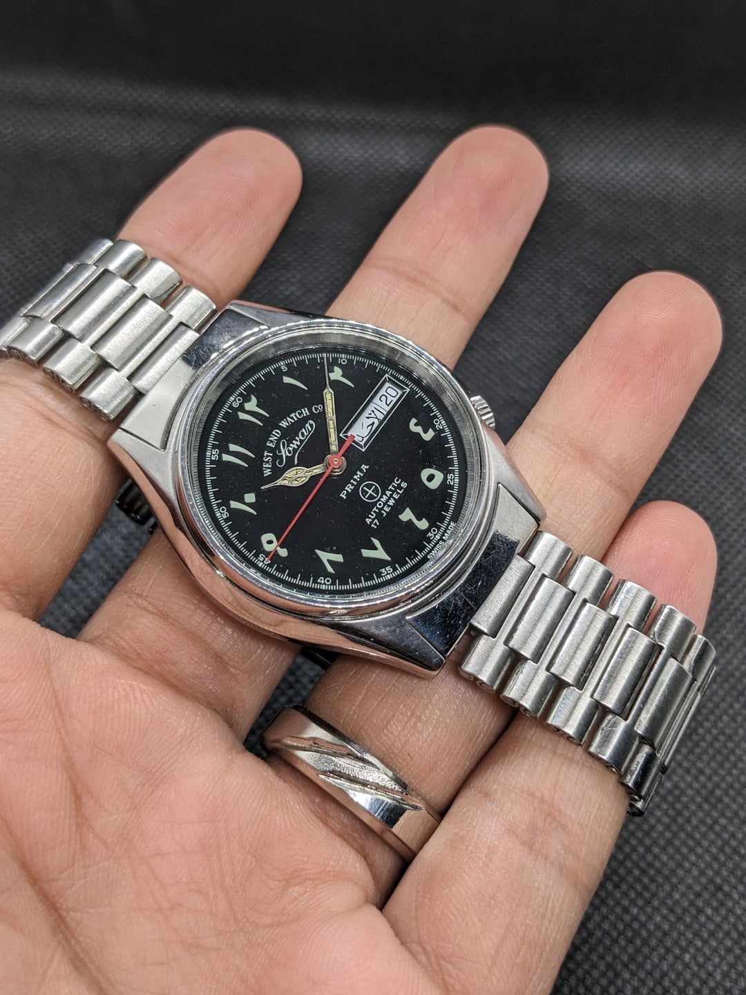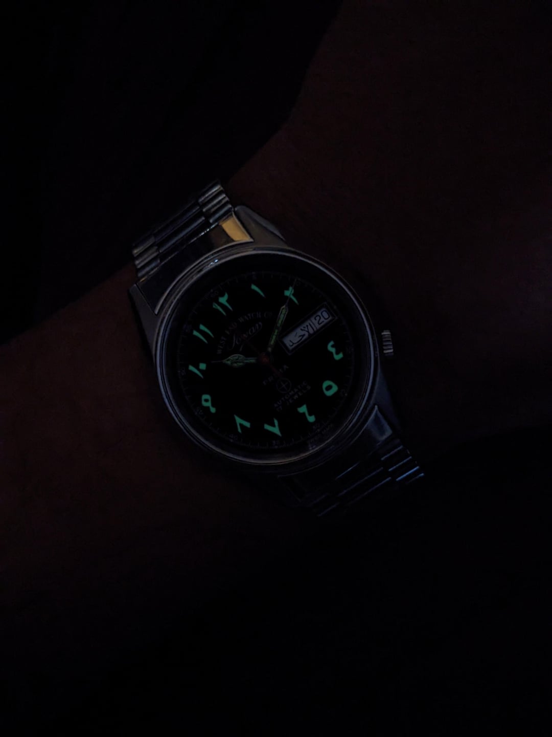 Timestamp in the End. For Sale here is a West End Sowar Prima with an Eastern Arabic Numerals Dial. Case Diameter of 36mm. Automatic Movement with Bilingual Date Window. Folding clasp. Unpolished. Good Lume on the numerals. Below average lume on the hands. Photo attached. USD 195 Shipped via FedEx. I accept Zelle, PayPal FF, and Crypto.