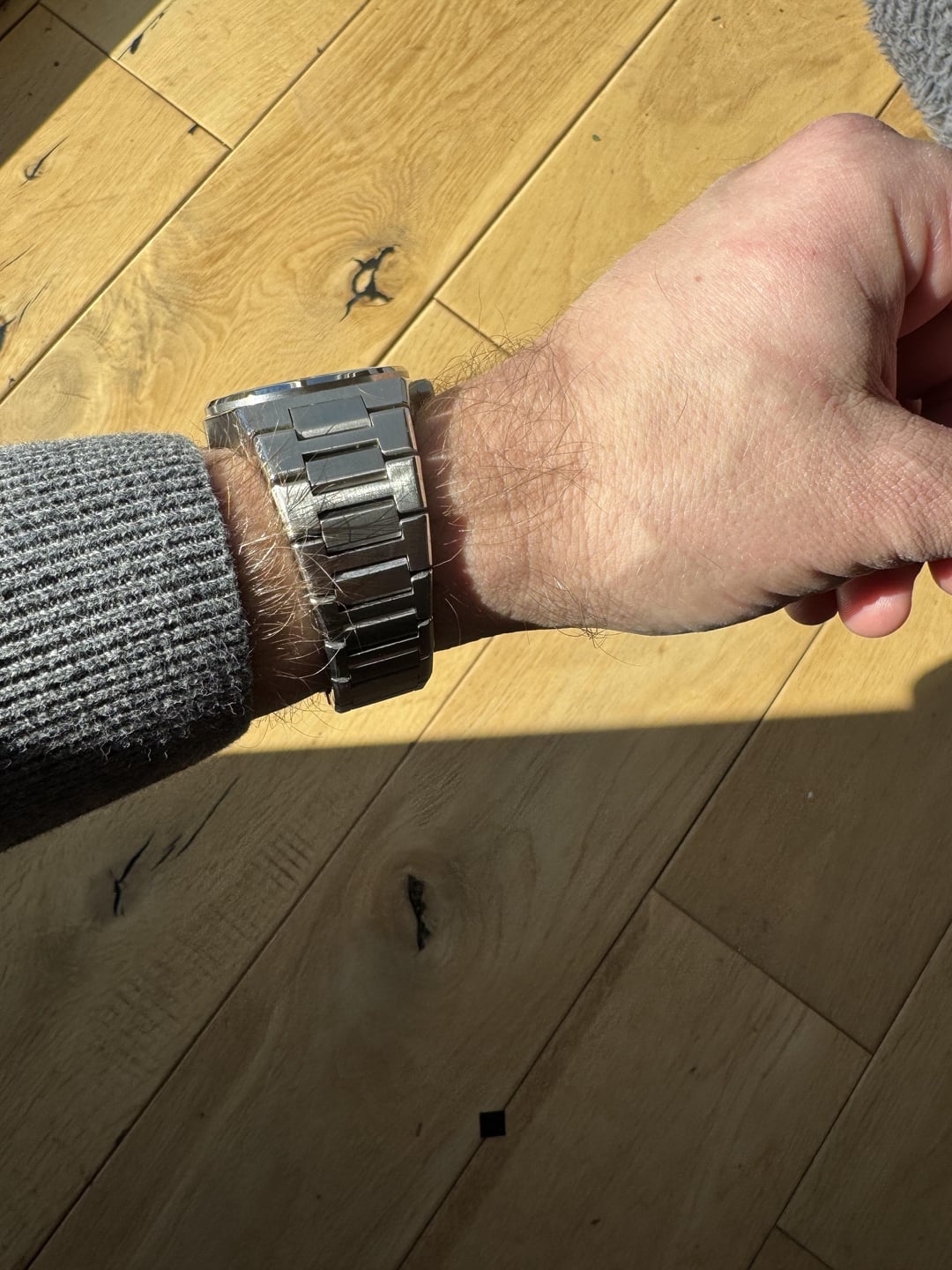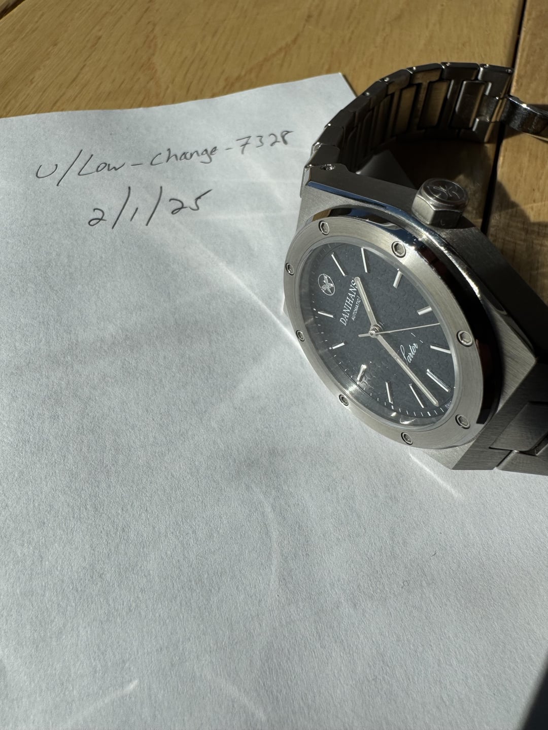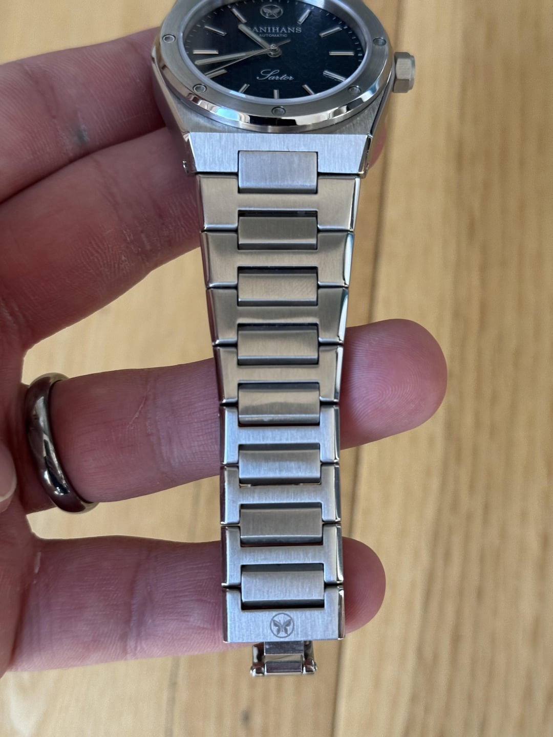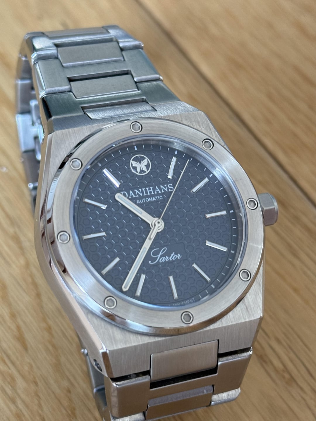 Hi watchex, This is the Danihans Sartor. It is a micro brand from Italy. It reminds me of a blend between vintage IWC ingeniuer’s and of course the royal oak! It has a polished chamfer that goes all the way down the whole bracelet like the royal oak. This is a 39mm case Blue Dial Sellita SW-200 movement Water resistant to 200m No date-but does have the ghost position when pulling out the screw down crown to set the time The bracelet tapers dramatically which is nice and has a butterfly clasp. This is a full set and comes with all links and a half link. It is in really good condition but has a few hairlines here and there. Here’s the there website: https://danihanswatches.com/ YouTube video (use English captions): https://youtu.be/fpmS8cve1vg I’m asking $400 shipped Zelle, CONUS