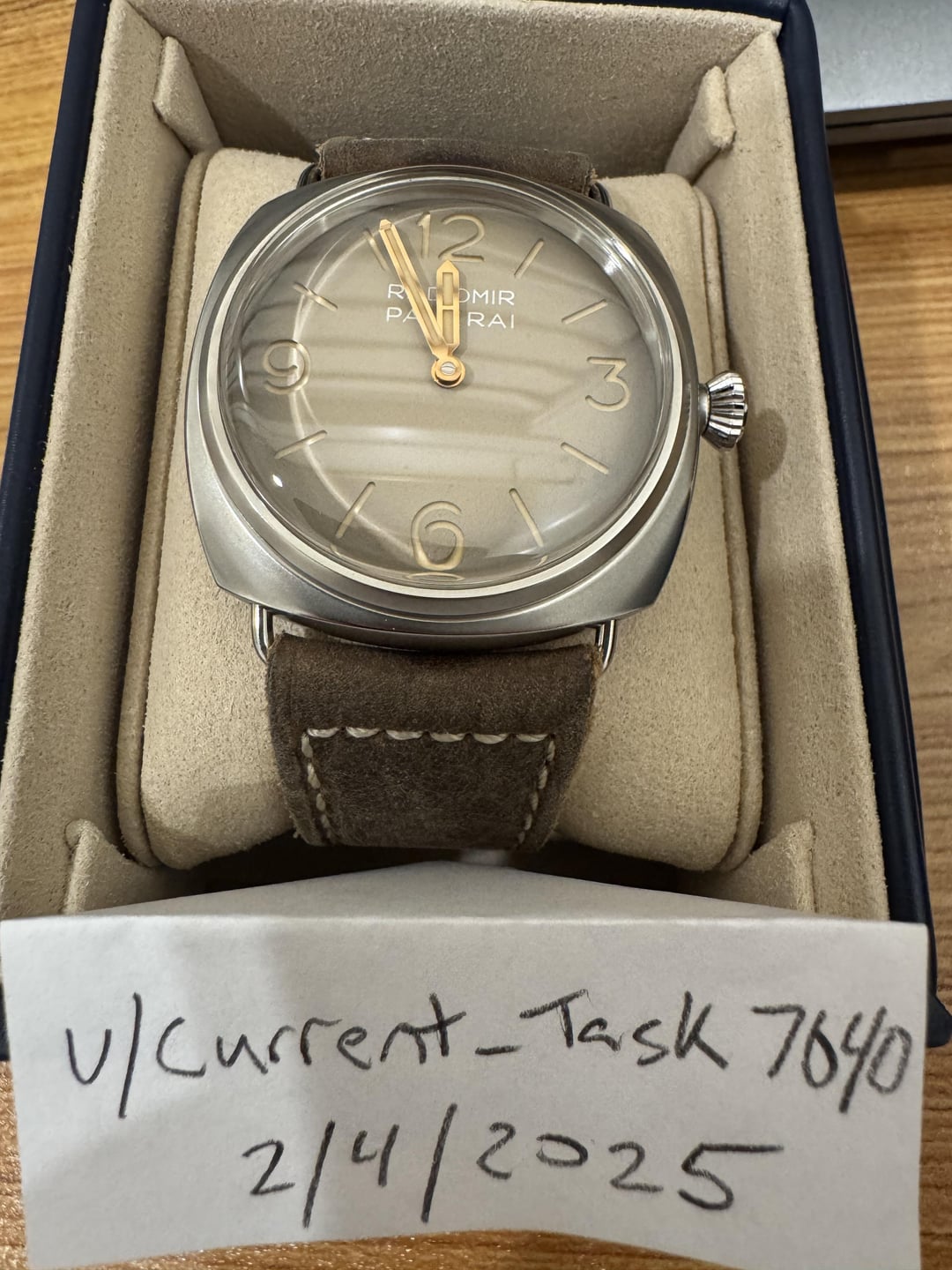 Hi all, I have a Panerai Radiomir 1350 “Tre Giorni”PAM01350. Mesmerizing beige dial with luminous Arabic numerals and hour markers. The dial is unique and absolutely stunning. Excellent condition. Comes with the complete kit - boxes, case, papers, warranty card, factory stickers, hang tag, and case protector. The watch is under Panerai warranty until 2031! Asking $5150 shipped or best offer after wire or Zelle payment received. Happy to answer any inquiries and/or jump on a video call with the watch.