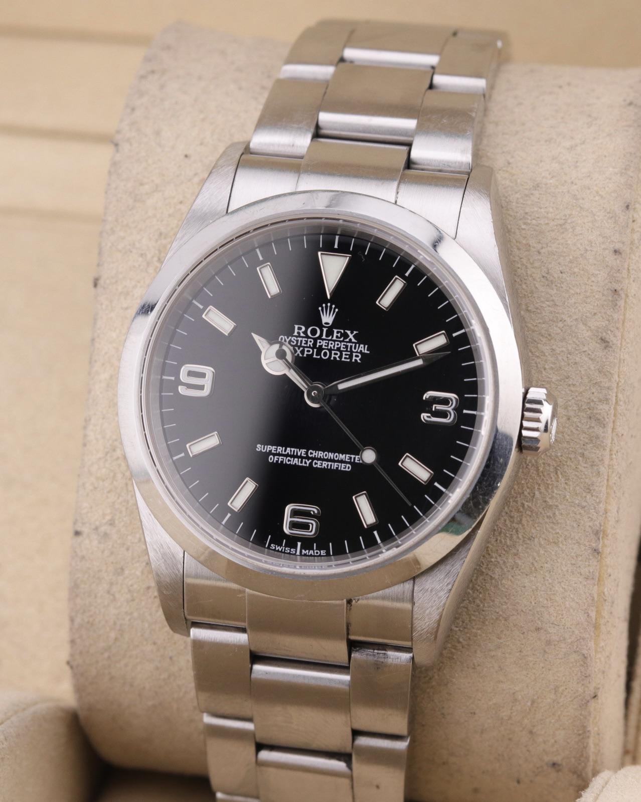 Up for sale is a **2001 Rolex Explorer I 36mm 114270** Size: 36mm Location: U.S. / Georgia Condition: Watch is in great condition overall. The sapphire crystal is clean with no scratches or chips. The case and bracelet both appear to be unpolished. The movement was just serviced this year. Fully linked bracelet. No stretch. Comes with original serialized hangtag. No box or papers. [Pictures](https://www.dropbox.com/scl/fo/ozxton03tmr7fbqzkmz1w/ANua22GfS-cd779N3oTF0HQ?rlkey=qv3jicjhar4vs0ahxefs5qdno&st=70999r9t&dl=0) [Timestamp](https://www.dropbox.com/scl/fi/ndoodfvgl2i2j8kzx8z0q/Photo-Feb-11-2025-4-18-22-PM.jpg?rlkey=bf1mewnptx9isexifxuvt6e5f&st=aa6f8978&dl=0) **Price: $4,900** payment methods accepted are Zelle, Paypal G&S+3.5%(for qualified buyers), and Bank Wire. I will also accept cryptocurrency and silver/gold bullion. I ship within 24hrs of receiving payment. I’m willing to ship almost anywhere with buyer paying shipping **Any watch offered can be polished and serviced prior to shipping for an additional cost. Lead time varies.** **READ BEFORE SENDING TRADE OFFERS:** *If you send me a trade offer and it has no price or “trade value” it will be ignored.* No trades on or for watches under $1k. *GA residents may be required to pay state sales tax* IG: thewatchtradingpost Please feel free to reach out to me with any questions or concerns at [email protected] or message me privately on here and I’ll respond ASAP. I’m also open to phone calls and FaceTimes during the day. **There has been ongoing issues with Reddit chat/messages recently. Email is the fastest way to get into contact with me.**