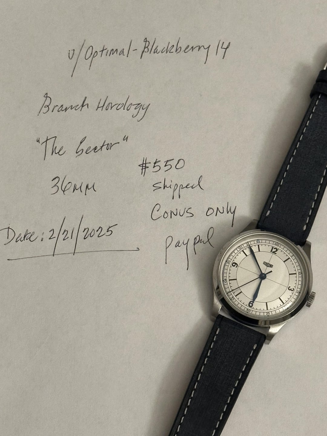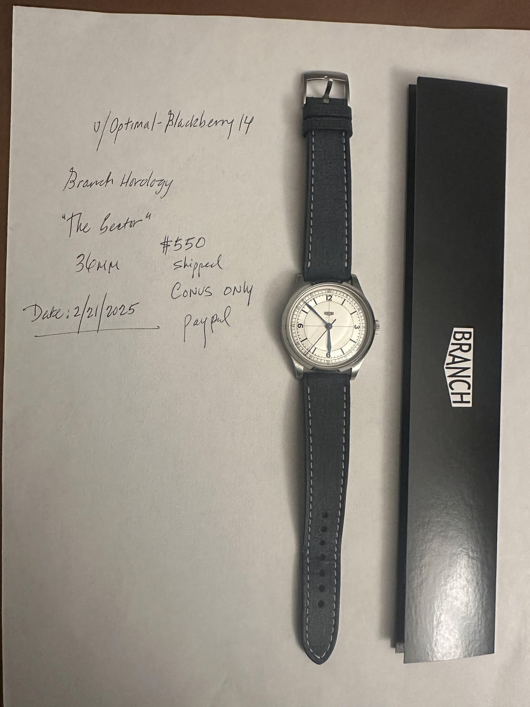 For sale: Branch Horology - The Sector 36mm , and I’m also including 10 x leather watch straps for this watch custom made by TUNS, along with a leather strap case. $550 + Paypal GS fee Only shipping to CONUS