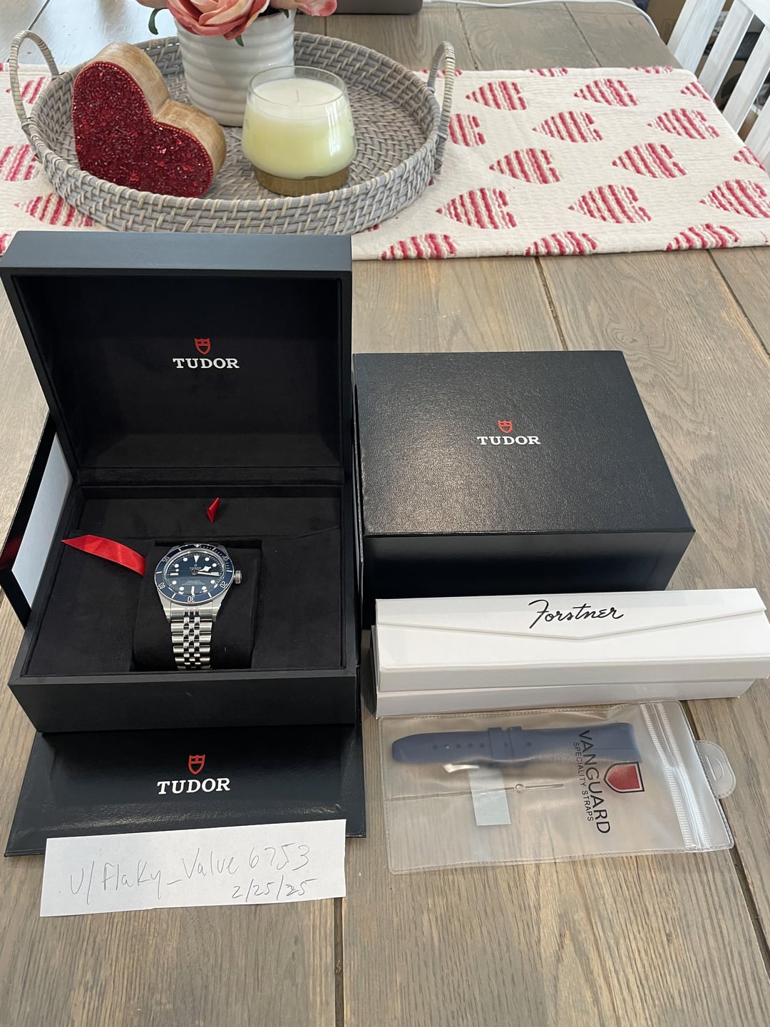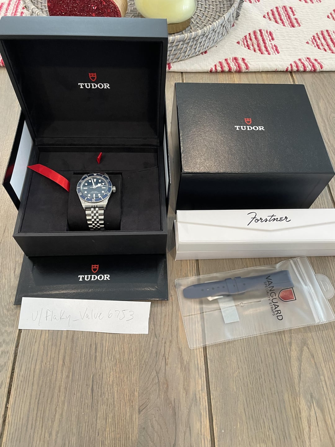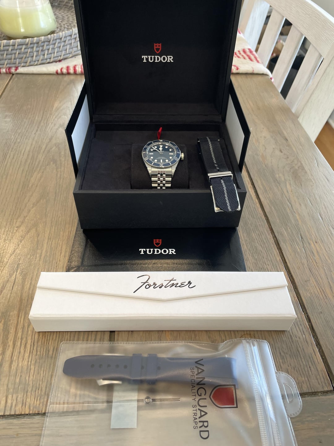The watch comes with the Tudor nato and I'm also including a Forstner jubilee bracelet and blue Vanguard rubber strap. These two extras are in excellent condition and are worth over $300! Reference # 79030B and it comes complete with all boxes, papers, booklets, original receipt and Tudor Warranty Card dated June 2023. Asking $2,650 shipped within CONUS.