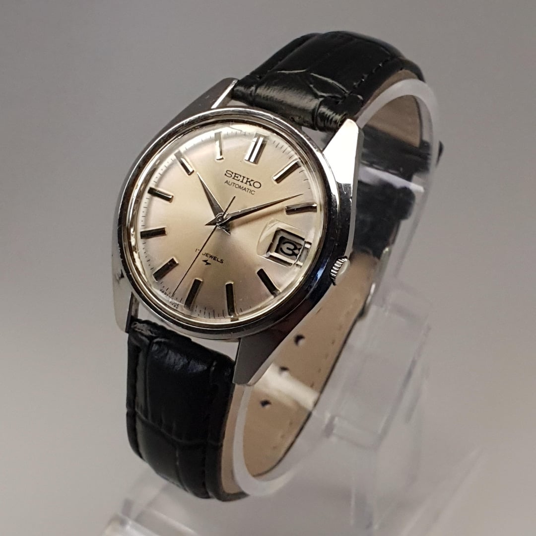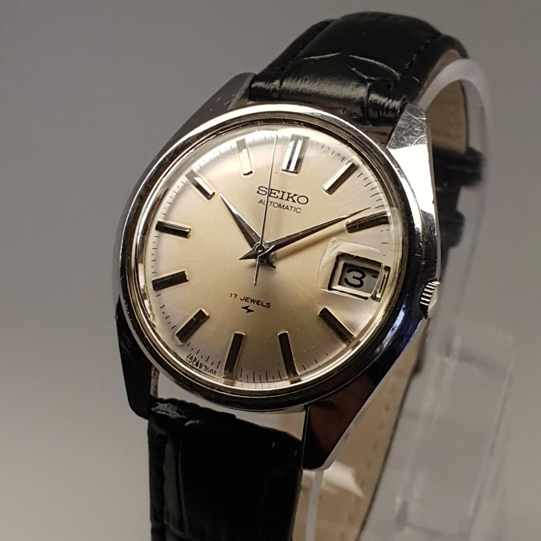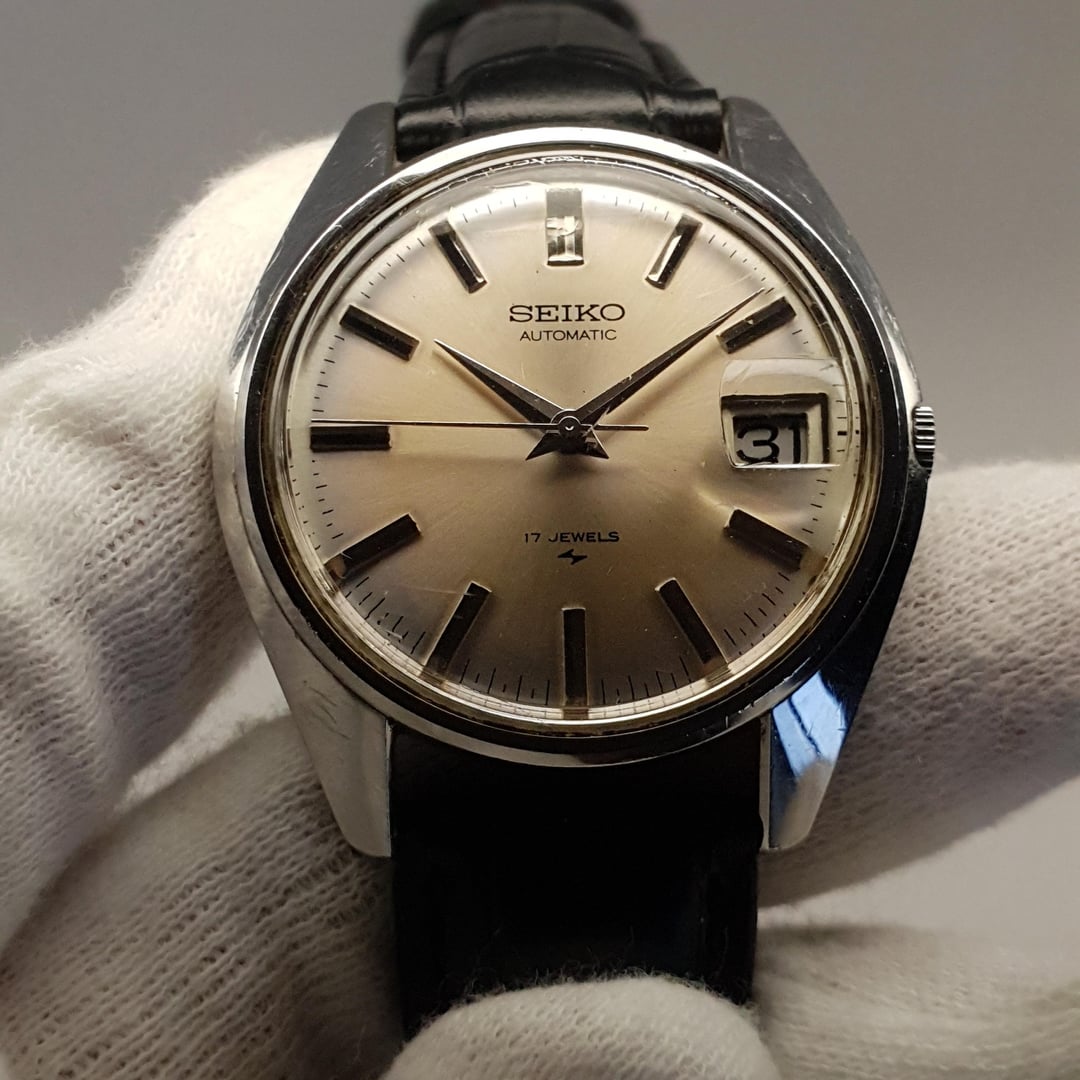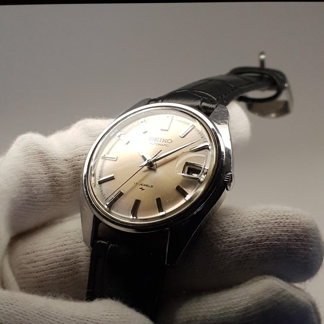 For sale is this vintage Seiko 7005-8000 Automatic made in Japan in December of 1970. The star of the show is this beautifully patinaed/tropical dial which was once a silver sunburst but over time has become a lovely light rosé from the middle. It has classic Seiko design even akin to Grand Seiko case design as well as sharp dauphine hands. It houses the calibre 7005 which is considered very robust and a workhorse movement. Typical of the 70s, it has a cyclops over the nicely framed date window. Japan-made in the Daini factory at the time of the fierce rivalry with the Suwa factory - proudly sports the Daini factory logo on the dial as well as large on the case back. On the topic of the case back, "Waterproof" is written on the back before it became illegal to write that (all watches are not waterproof past a certain depth hence why they now have to put "water resistant" to the rated depth). Under a centimetre thick, decent for an auto. Original crystal, original finish. Good condition for its age, general wear, a few scratches on the crystal. Strap also barely worn but not brand new. Dimensions are: 36mm x 41mm x 9.8mm Lug width 18mm Looking for $200 OBO (Buyer pays Paypal fees 4.5%+$0.30) International Tracked Shipping included in price More pics: [https://flic.kr/s/aHBqjC3Pbe](https://flic.kr/s/aHBqjC3Pbe) Bought in Japan. \*Returns accepted but return postage costs are the buyer's responsibility.