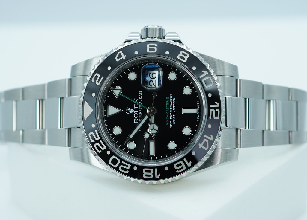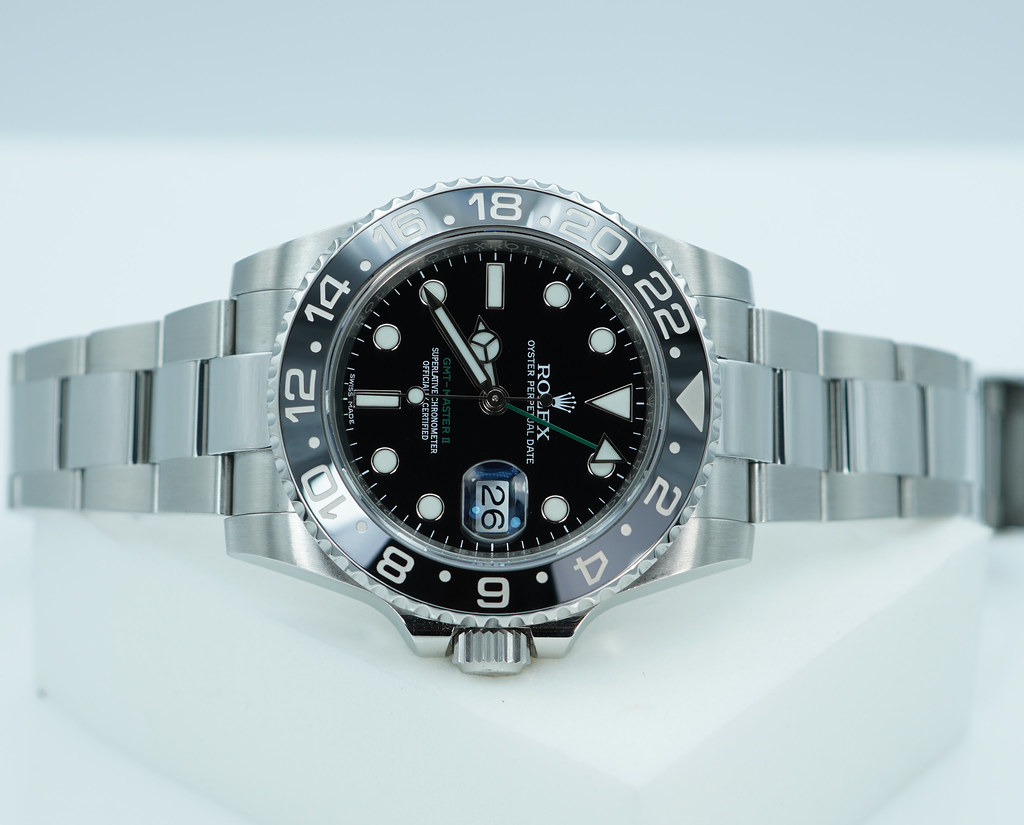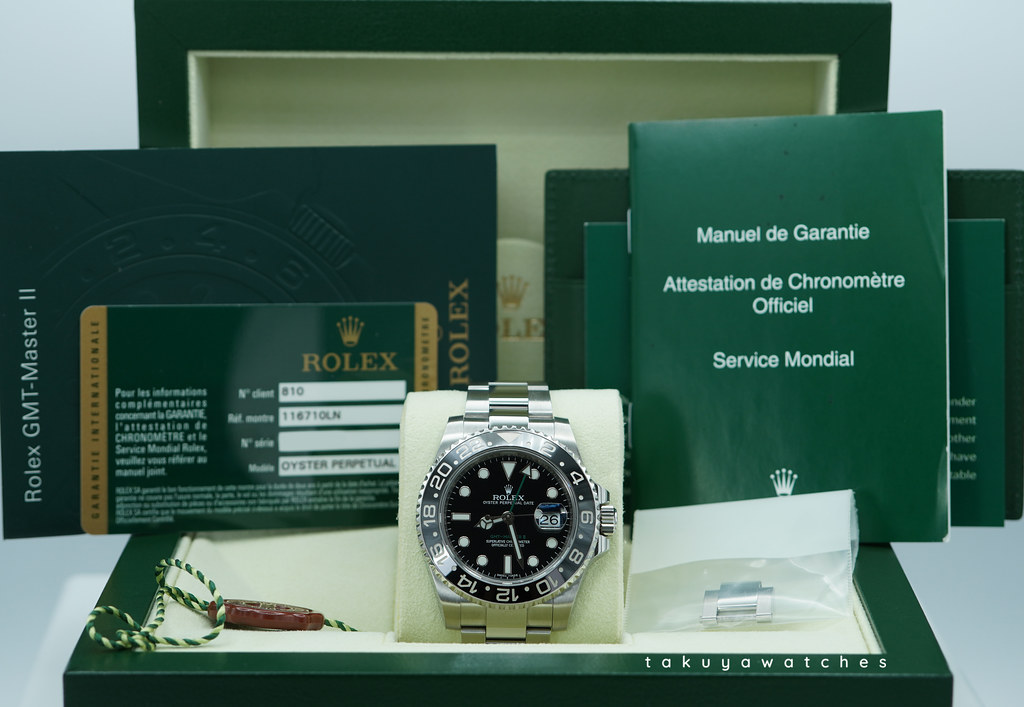 Hi, Selling An Excellent Condition & Very Beautiful 40mm Rolex 116710 Gmt Master 2 Stainless Steel with Black Ceramic Bezel, Black Dial with Green Gmt Hand. Purchased from Rolex Authorized Dealer in 04.2014. Watch Running Perfect with Non Issues. The Bracelet has full 11 Links which can fit up 7.5 inches wrist. Boxes & Papers.