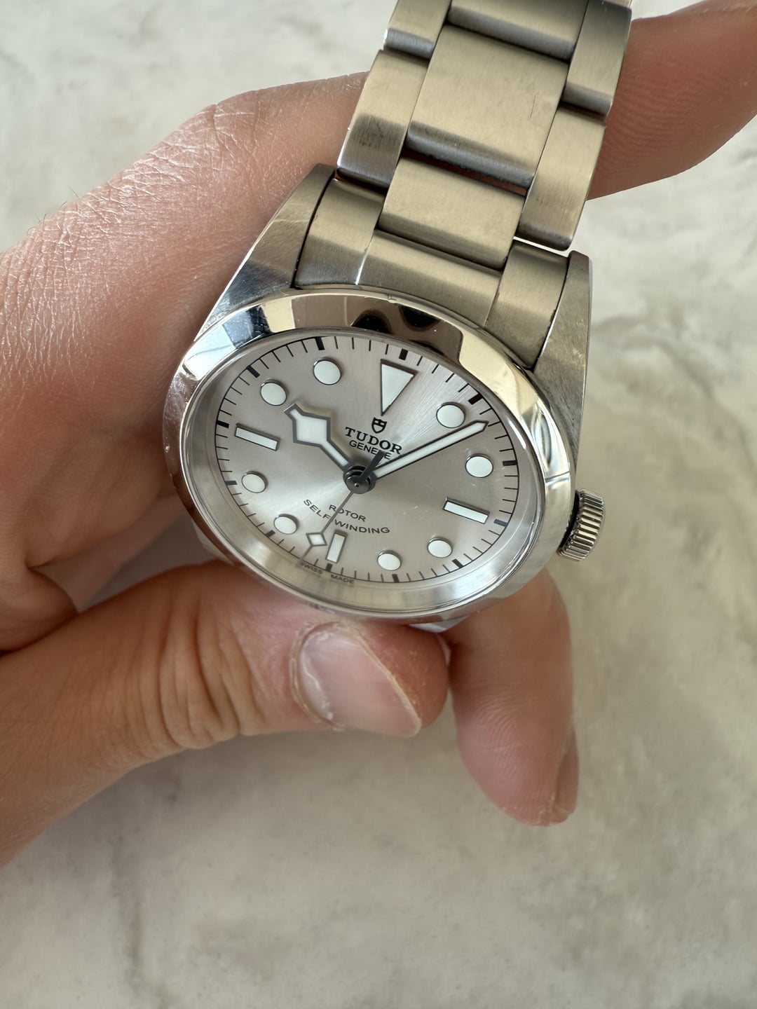 Hello WatchEx, I’m selling my Tudor Black Bay 36 purchased in 2021. Watch is well-worn but in overall good condition so priced accordingly - I've done my best to capture the hairline scratches / dings but please let me know if you'd like additional photos and happy to share. Have the original box + certificate of sale as well. Let me know if you have any questions!