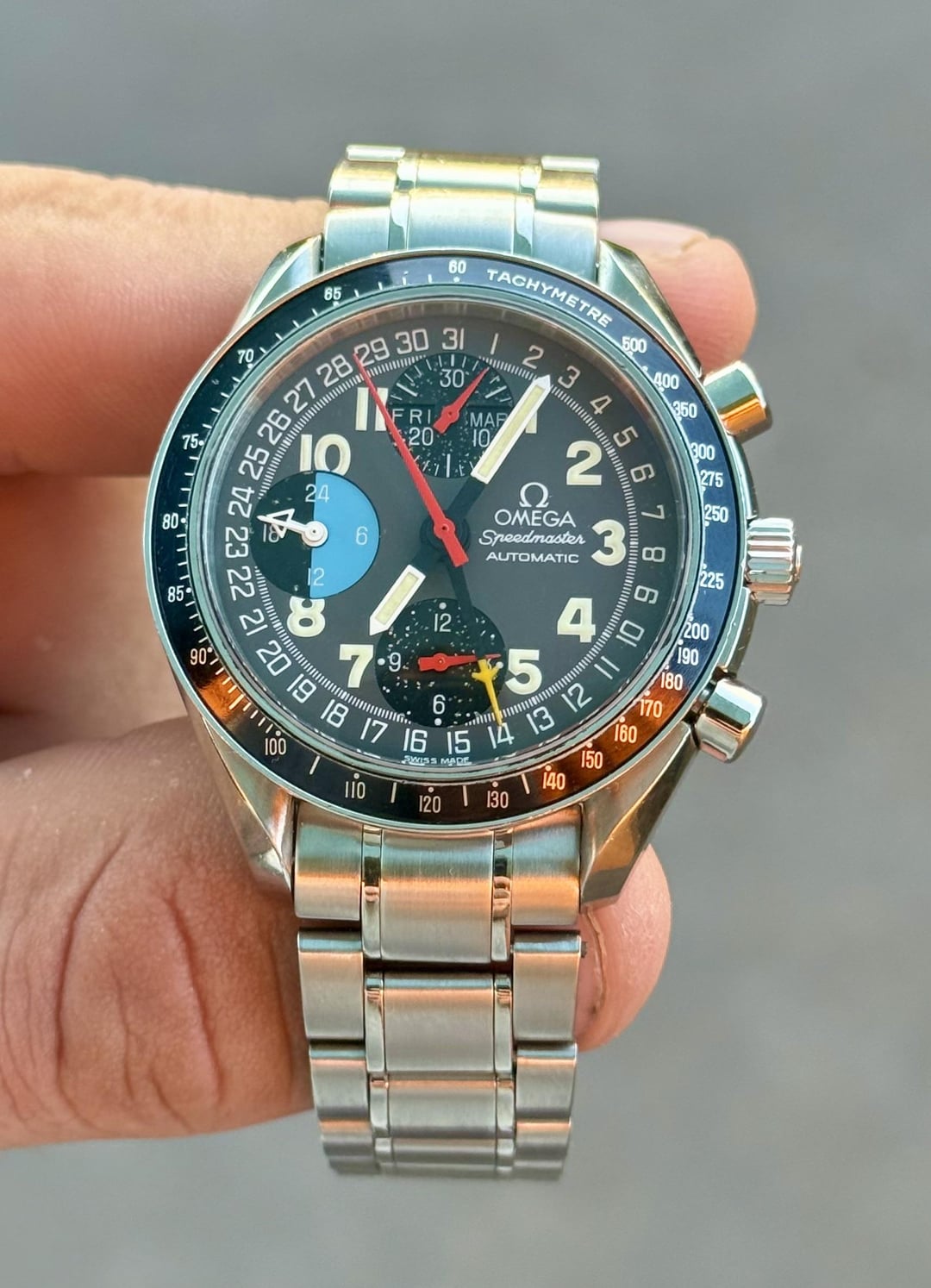 Timestamp: https://imgur.com/a/xWoplBy Location: Australia, but experienced in posting to CONUS Price: $2500 This guy is a cult classic—one of the most unique Speedmasters ever made. With its multi-colored dial and 39mm case, it brings a playful yet refined look to the legendary Speedmaster lineup. This model is becoming increasingly hard to find, especially in this condition. The pops of color throughout the dial give it a vibrant character, while the steel case and bracelet keep it versatile for any occasion. The Details: • Year: 1997 • Case Size: 39mm • Condition: Excellent • Scope of Delivery: Watch only • Location: Tasmania, Australia • Shipping: Yes, experienced in posting to CONUS A Speedmaster with character, history, and a unique aesthetic—this one won’t last long.
