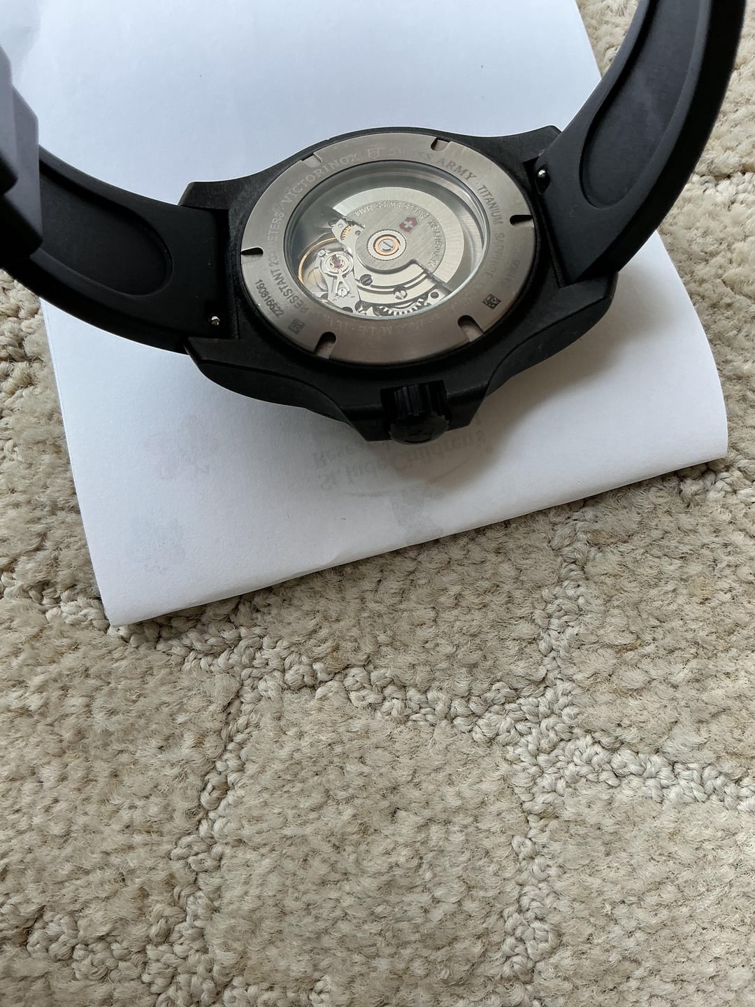 Most expensive of INOX model. Carbon fiber /Titanium with automatic SW 200 movement and beautiful tapestry dial.