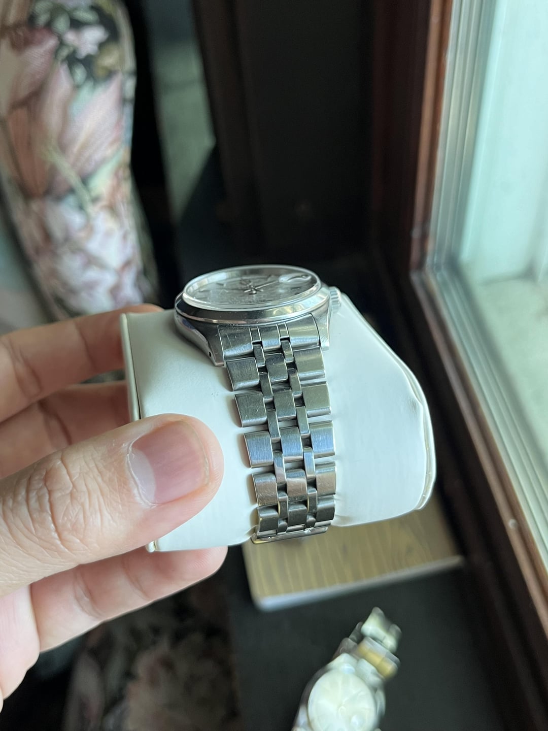 Selling this beautiful Tudor day date, I love this silver dial, pretty understated and classy. Wears nicely at 36mm great for a daily watch. Condition is preowned. The case is in great condition with some light scratches. The bracelet has hairline marks but nothing major. Please see pictures as they are part of the description. All the functions are tested to work. If you have any other questions or request to see working feel free to reach out! Comes with watch and extra links that can fit up to roughly 6.75in wrist. No original box or papers. Priced to sell at 1875 plus shipping, located in the USA. This is the cheapest one I can find on the market, if you can find cheaper message me and i might just beat it~ have over 100 transactions here so deal with confidence! Timestamp last pic