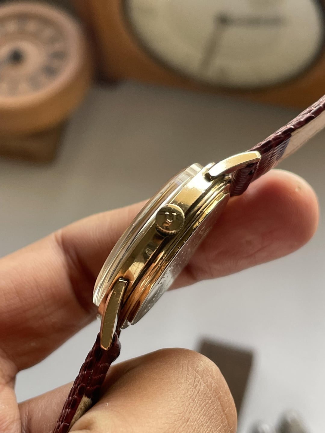 Up for sale is an exceptionally rare Universal Genève Polerouter Jet with the reference number 3092. This vintage gem features an automatic movement housed in an approximately 35mm case. The watch boasts a 10k gold-filled case, a stunning patina dial, and elegant lugs, adding to its timeless appeal. It comes attached to an aftermarket strap. The watch shows clear signs of wear, consistent with its age, further emphasizing its vintage character. Asking: $775 shipped via UPS/FedEx. Payment accepted through, Chase and Zelle only. Note: The watch will be shipped within 2-3 days of payment.