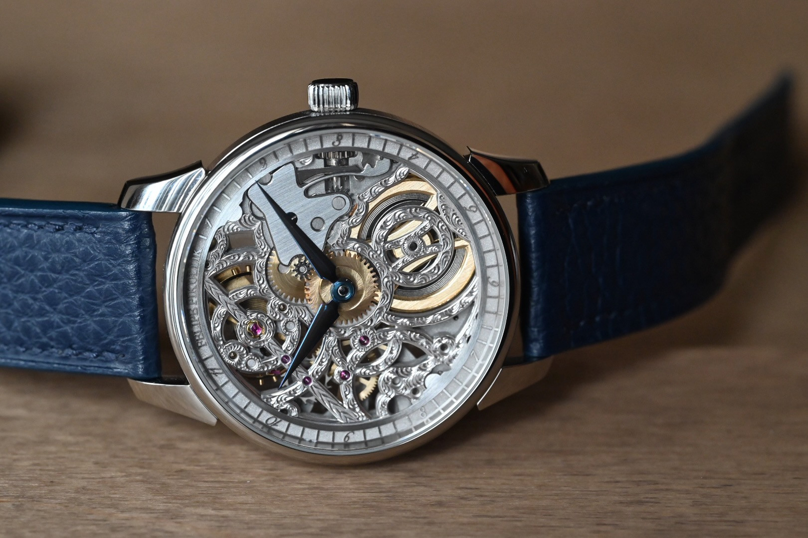 Presented in a 41mm case of polished stainless steel, FPSK 23 features a fully skeletonised dial and bridges, which have been painstakingly decorated with intricate engraving throughout and visible. Limited to only ten pieces, it is powered by a skeletonized and engraved manual winding movement which has a power reserve of 52 hours.