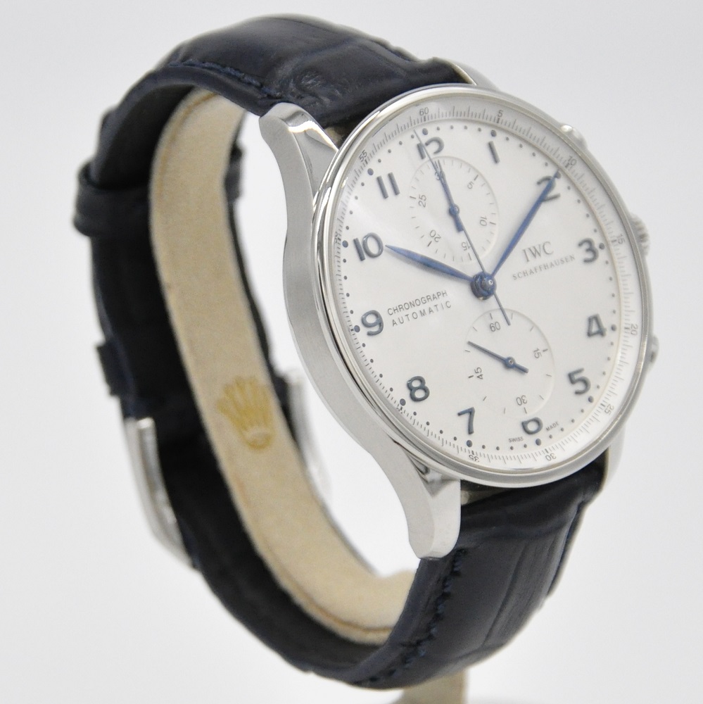 | IWC Portuguese Chrono Automatic Steel Blue Numbers 41mm Watch IW371417 sellawatch (2885) |