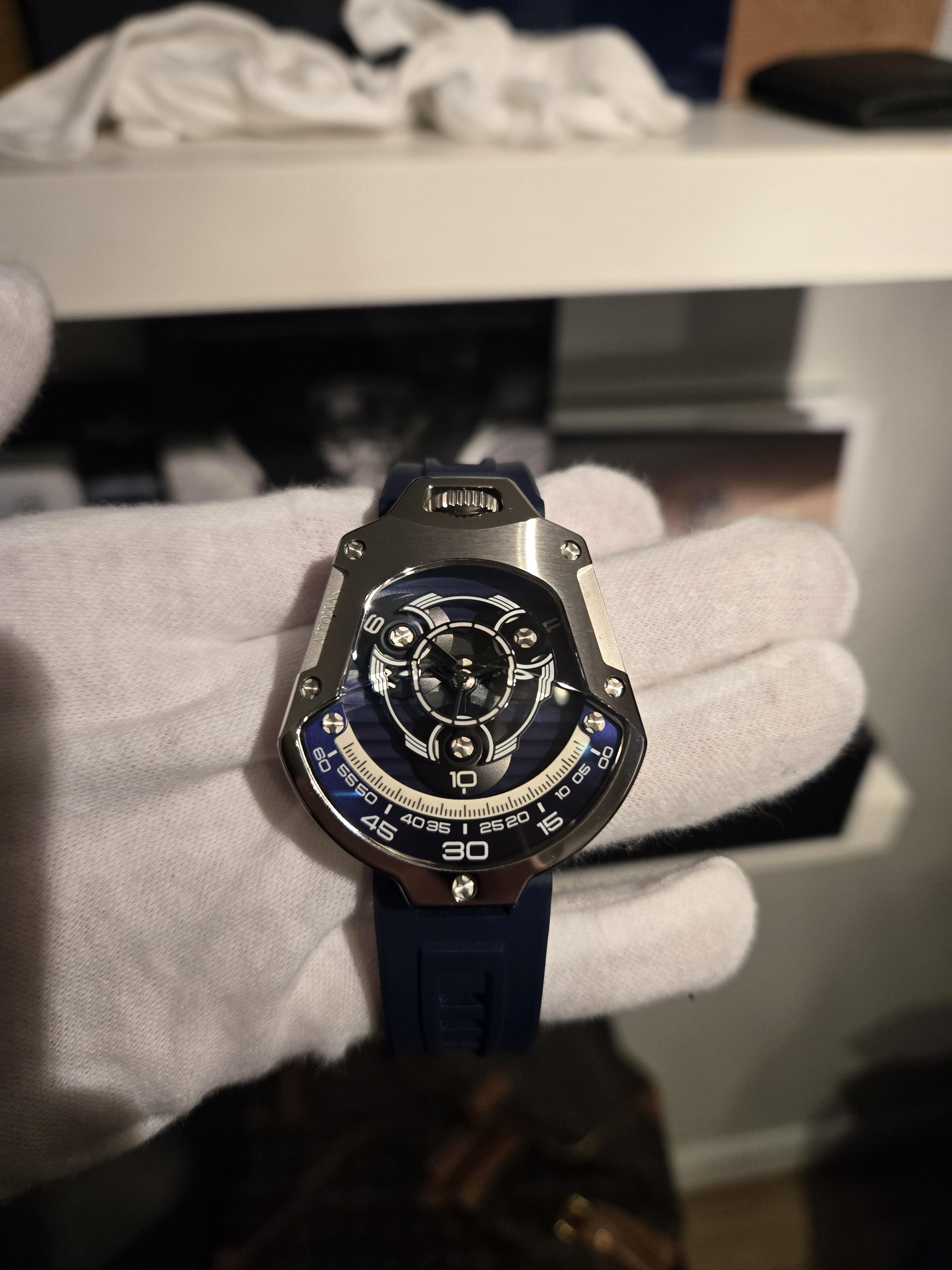 Excellent condition, full kit Atowak Spaceship azure blue model. Limited edition piece, this piece is #40/300. I have worn this watch a total of maybe 5 times. The watch and straps are in brand new condition, aside from one small hairline scratch on the top right portion of the case. Pictures accurately represent. The scratch is only noticeable in certain lights, can be polished out if desired. Box + papers included, which includes warranty card and date of purchase. Both the blue and black OEM straps are included, the black OEM strap is still in original packaging and never used. Watch will ship fully insured via Fedex, CONUS. I can also ship this watch internationally, however purchaser will be responsible for additional fees (typically around $230 from my experience). Only selling this watch due to house related expenses. Serious inquiries only please. **Willing to do Zelle, paypal (goods/services, buyer responsible for additional fees), or wire transfer. Price =** **~~$1,450~~** **$1400. No negotiations please.** Instagram = djcwatches Ebay handle = danielpharmd More pics = [https://imgur.com/a/atowak-spaceship-azure-blue-LaiHPu8](https://imgur.com/a/atowak-spaceship-azure-blue-LaiHPu8) Timestamp = [https://imgur.com/a/atowak-timestamp-RwrpxCc](https://imgur.com/a/atowak-timestamp-RwrpxCc) Best, Daniel