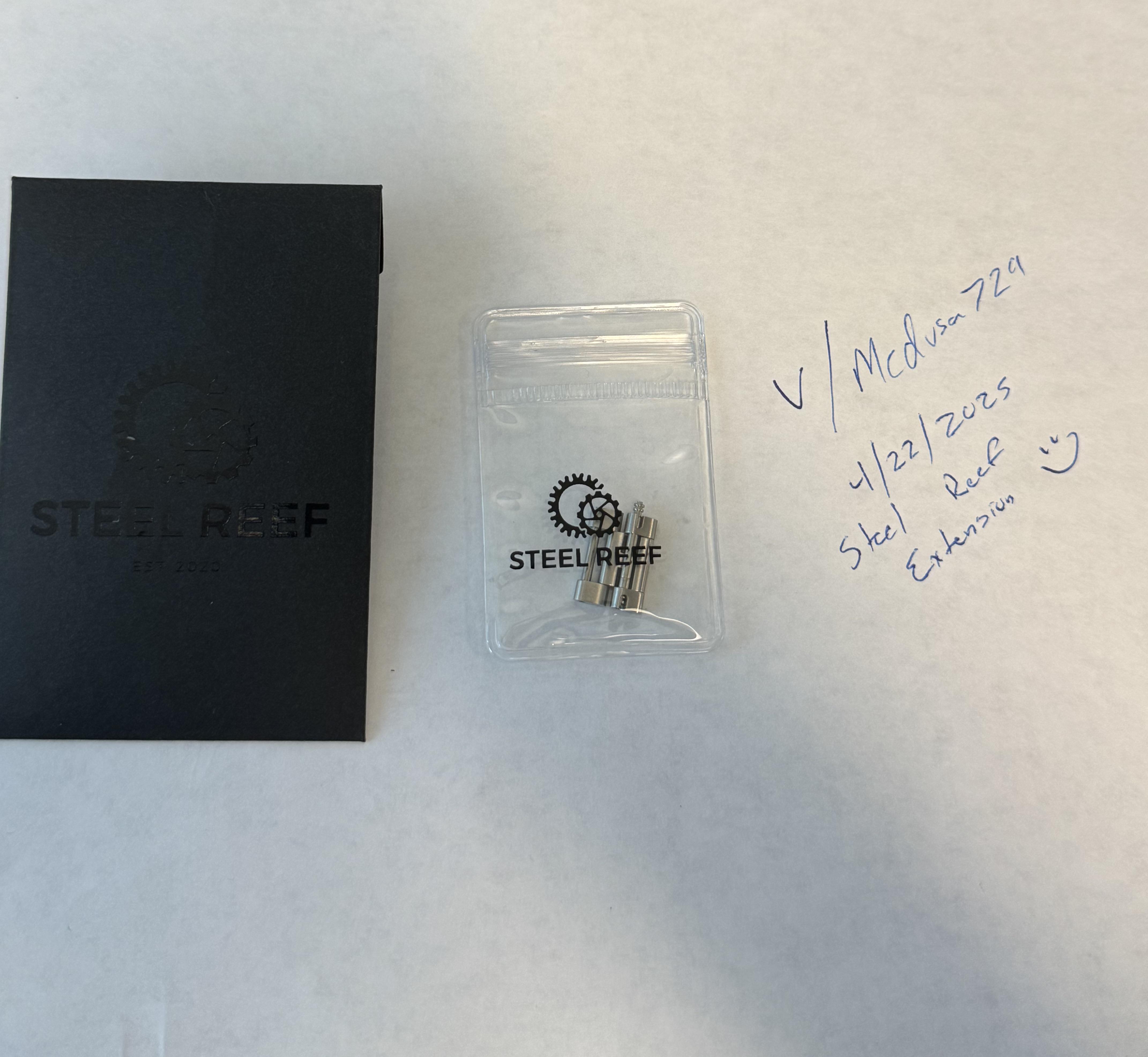 For sale is a Steel Reef on the fly extension link for a Rolex Explorer. In great pre owned condition. Decided to go with a full link added to my bracelet so passing this along. Retails for $160. https://imgur.com/a/vVtSveC Price - $100 SHIPPED CONUS. Payment taken via Zelle or Venmo. Will ship via usps priority mail with tracking within 24 hours of payment.