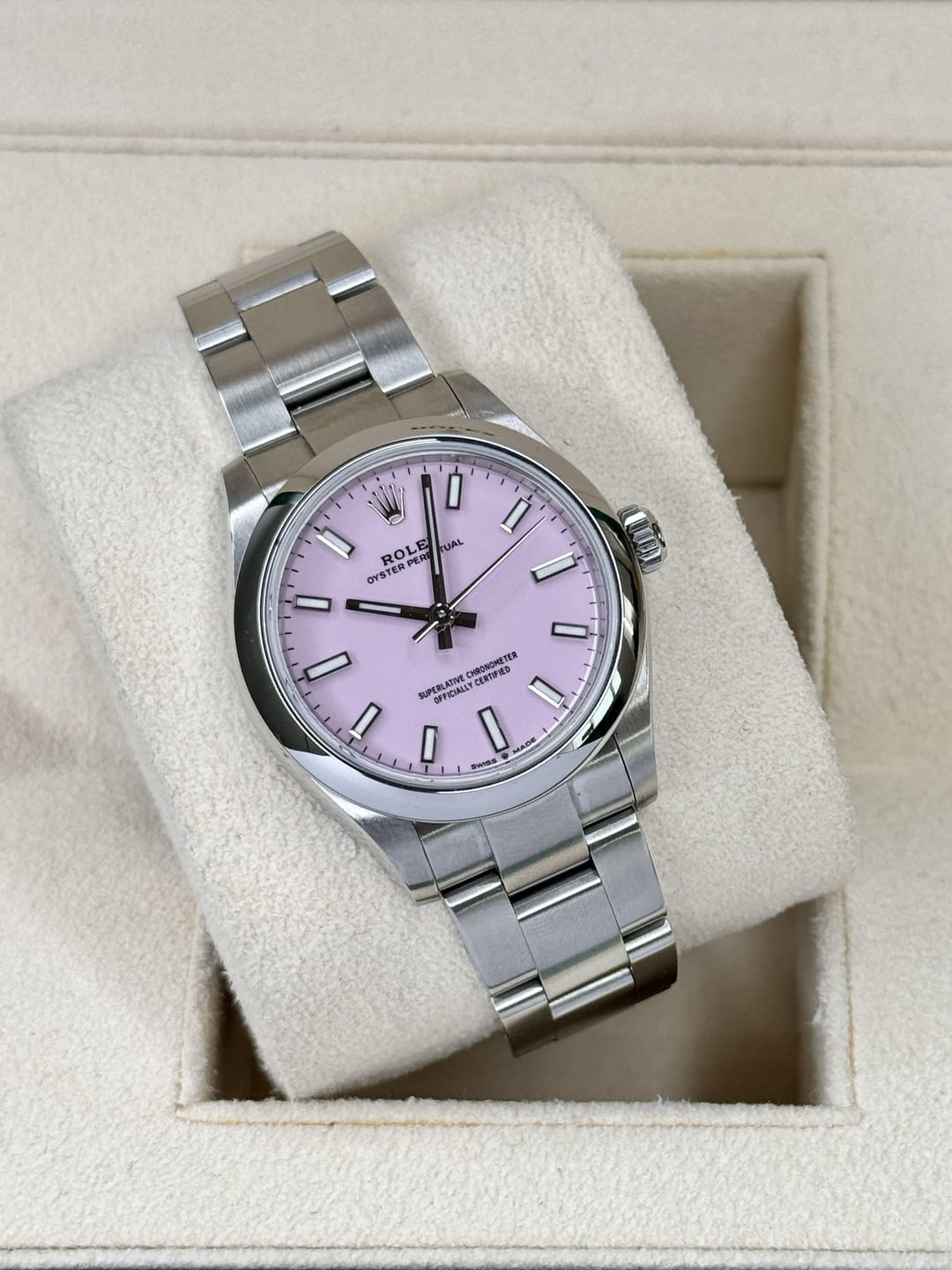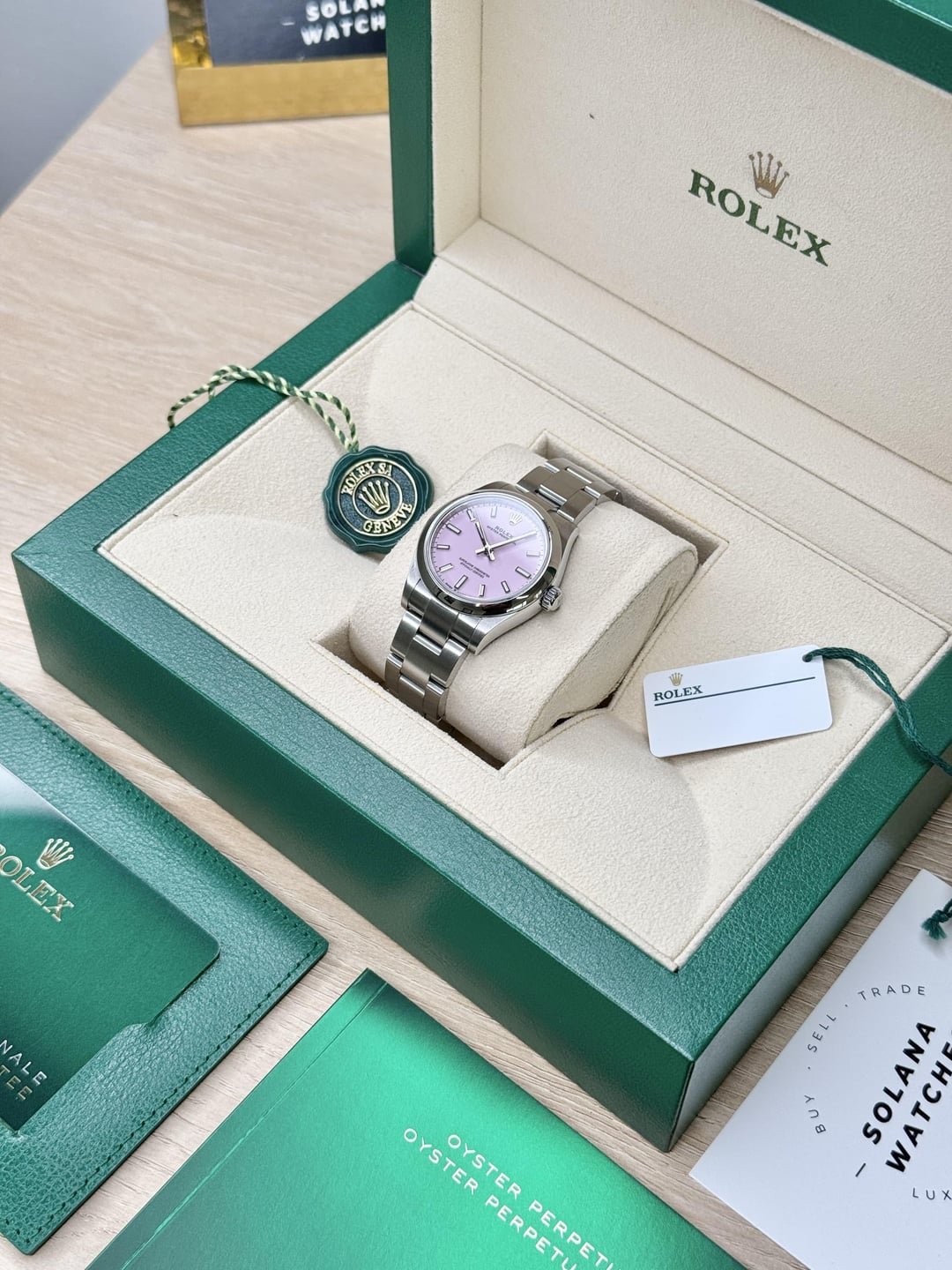 Selling this beautiful 31mm Rolex Oyster Perpetual with the highly sought-after Candy Pink dial, reference 277200 . **This watch is in excellent condition**. **It** **comes with** the Rolex green box, booklet, warranty booklet, leather wallet, warranty card dated 2022, 11 links, the serialized tag, and the green seal. **Photos:** * [Album](https://imgur.com/a/op31-candy-pink-2022-april-2025-3qra88w) * [Timestamp](https://i.imgur.com/T0USQcK.jpeg) * [More photos on my Instagram](https://www.instagram.com/solanawatches/) **Price is $9,500 delivered** in the CONUS. **I am a full-time watch dealer, and I have completed many transactions here.** I can provide additional references upon request. **Feel free to contact me** via PM here so we can exchange numbers and get on the phone or do a video call. You can also [find me on Instagram @SolanaWatches](https://www.instagram.com/solanawatches/). _Private showroom located in San Diego, CA. Reach out to schedule an appointment._ _All my watches are guaranteed 100% authentic, and I will stand by their authenticity._ _California buyers without a seller’s permit are subject to sales tax._