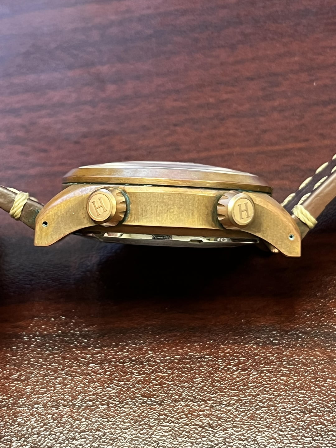 Hello all. Selling my Heitis Bronze Okeanos White Dial no date. This was the Kickstarter LE watch, #192 of 500. In very good shape. This gets worn a lot so there are some small desk dives on the case that the patina hides. As mentioned, the watch is currently building patina, and the pictures don’t do it justice. However, I can reset the patina if the buyer chooses. This is a great watch that punches well above its price point and always gets attention. Specifications: * 42mm Cusn8 Bronze Compressor Case * Seiko NH35 * Reeses Cup Crowns * Swiss SuperLuminova C3 Lume * Domed Sapphire Crystal * Leather Strap * Raised Indicie Dial * Deep Press Stainless Steel Caseback * Belt Buckle Clasp Price: $175 net to me via PayPal F&F or Zelle. Shipped via USPS to CONUS only.
