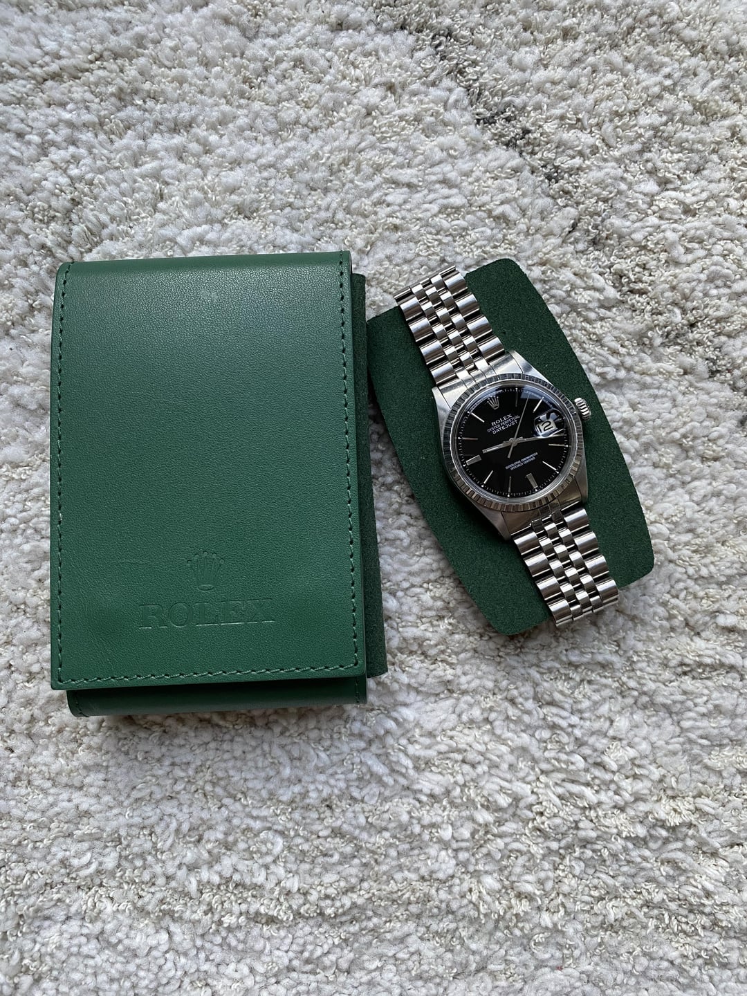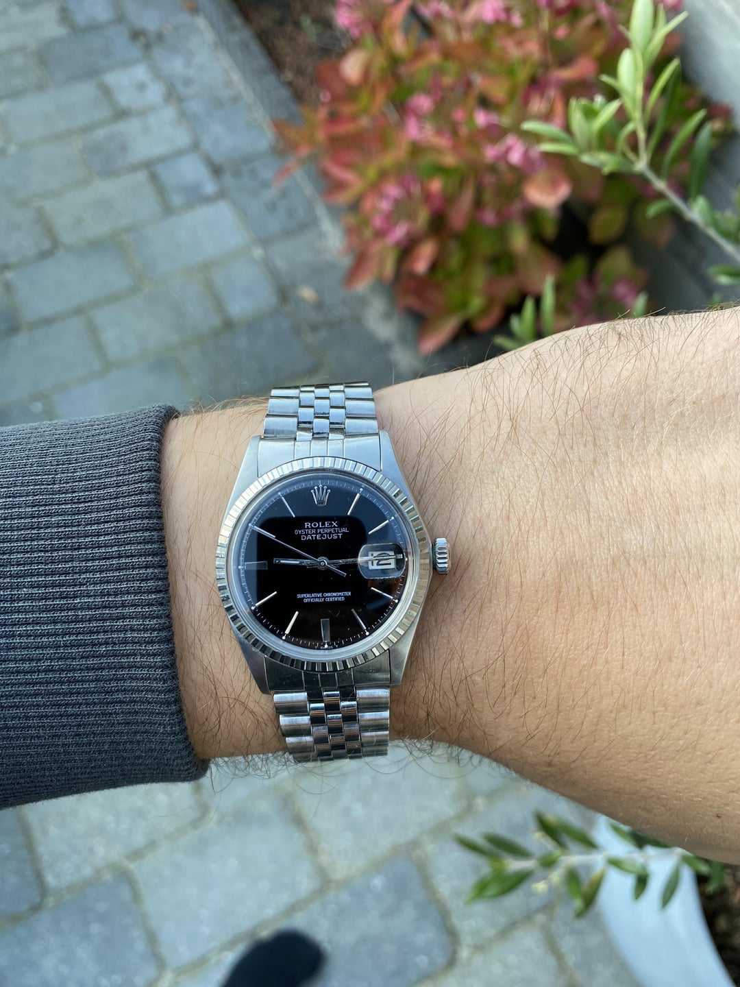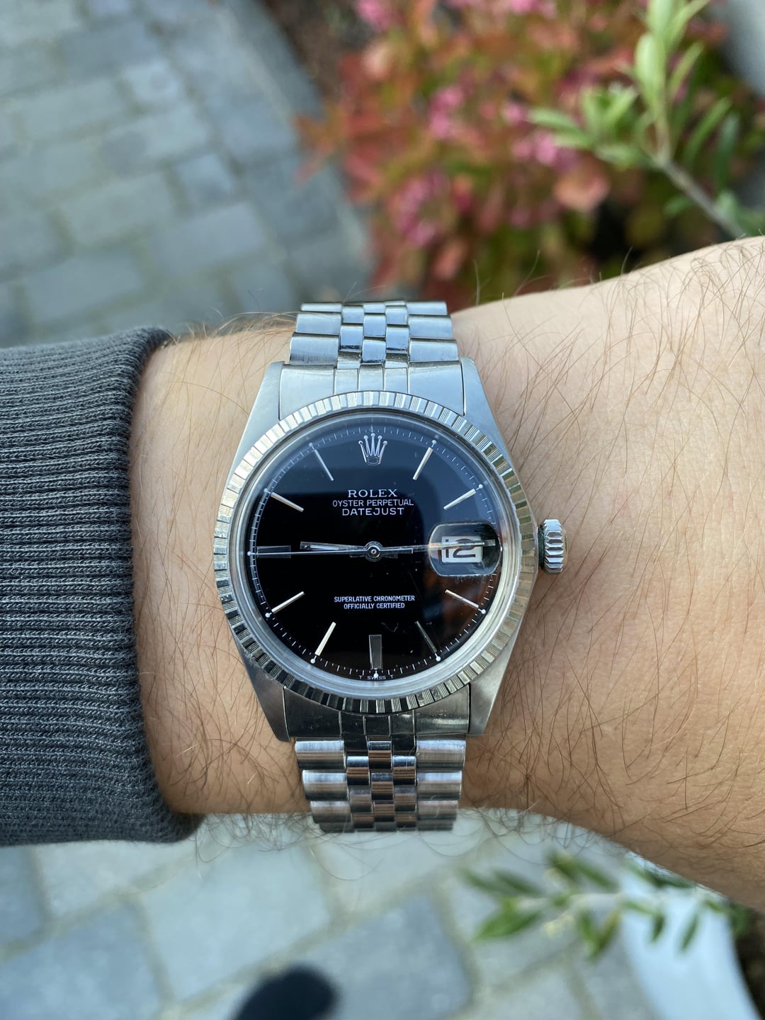 [WTS] Rolex Datejust 1603 - gloss black doorstop markers dial Reference: 1603 Year: 1969 Movement: Rolex Crown: Original Rolex screw down Strap: Original Rolex jubilee - fits well over 19cm / 7,5 inches Dial: MINT Rolex black gloss/gilt dial - lume still present Case: 36 mm, 42 lug-to-lug No box and papers - recent rolex leather service pouch included Pictures: https://imgur.com/a/emKZKc7 Videos https://imgur.com/a/uwV42ik Timestamp: https://imgur.com/a/DC8yRJv Price: $4633 USD or €4100 EUR net to me Up for sale is this gorgeous Vintage Rolex Datejust. A beautiful watch executed with a black gloss lacquered dial with doorstop markers at 6 and 9 o’clock. One of the more rare dials out on the market today. It runs really well as this watch was only purchased a couple of years ago from a legit vintage watch shop in Australia, they did all the proper checks and services needed before they shipped the watch out to me. Have been wearing it a couple days a week ever since, but now I’m ready for a step up in size and model - a birth year no date sub. I am letting a lot of my collection go to fund this. There are no original box and papers included, however a nice recent Rolex leather pouch is added in the deal.