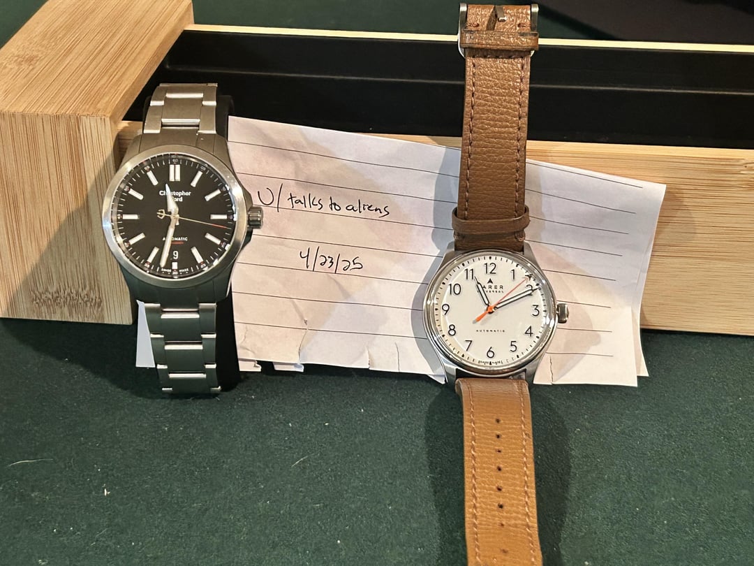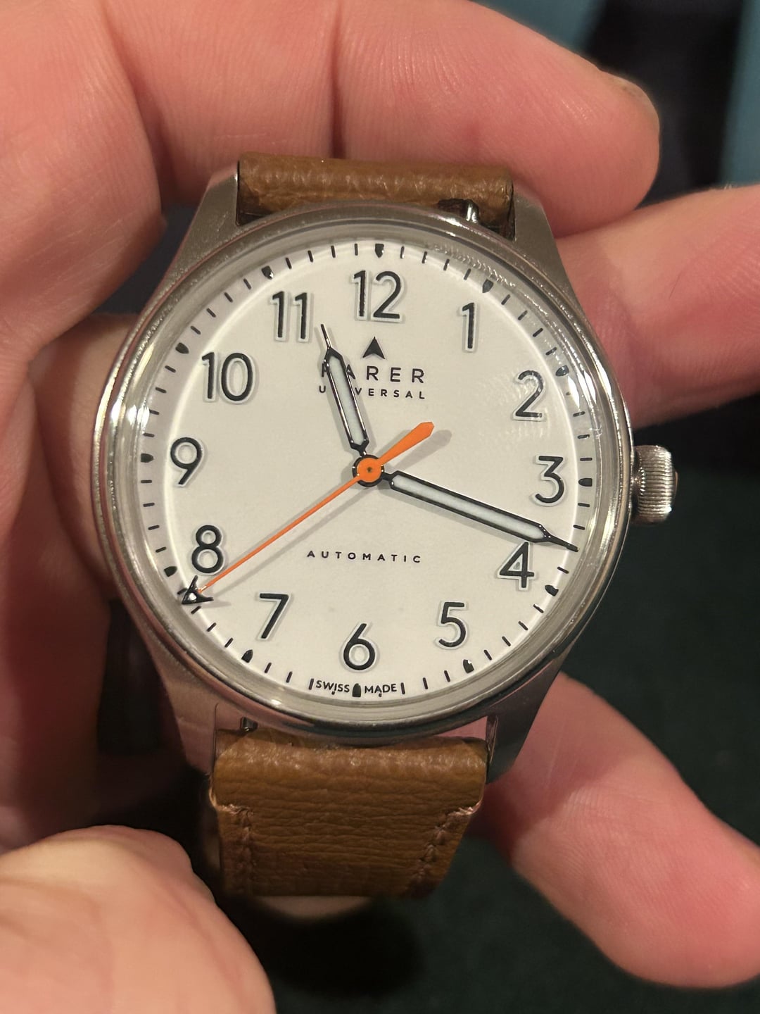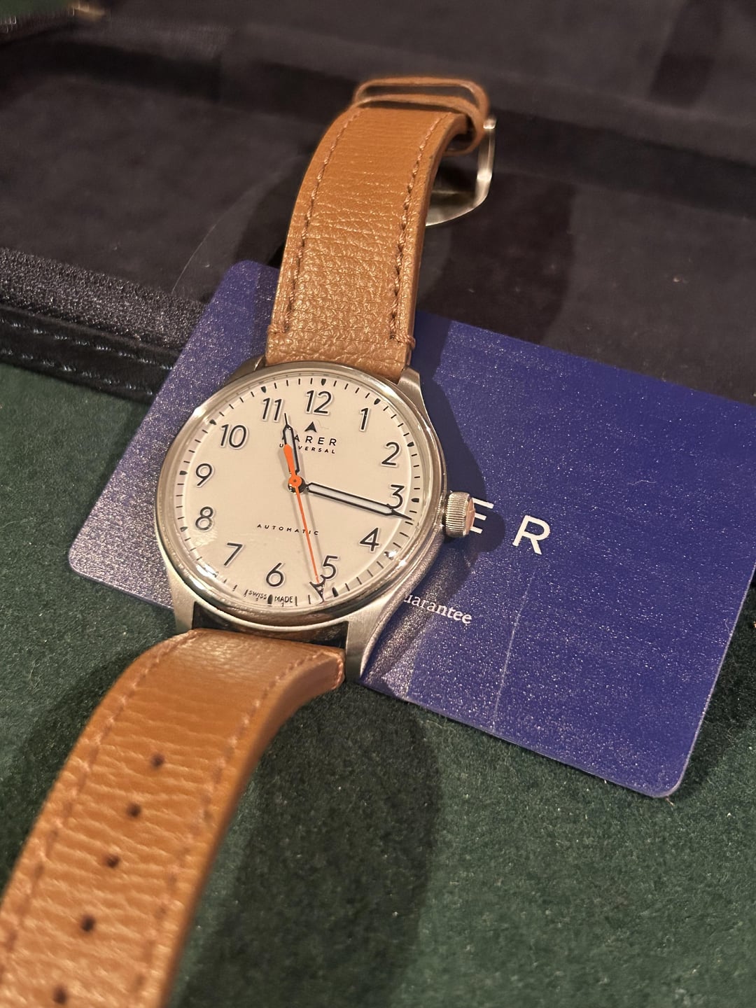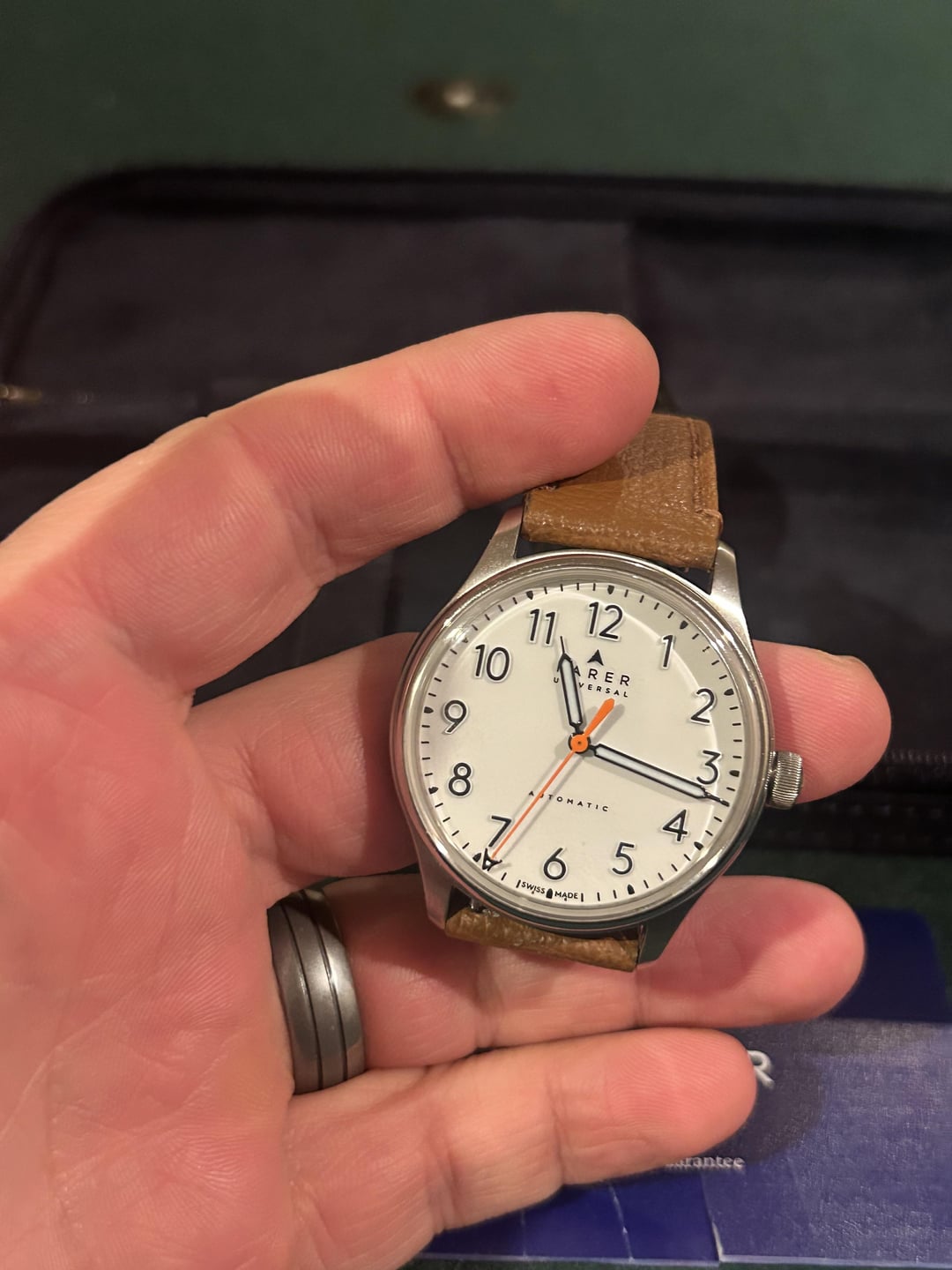 Farer Resolute original release, according to warranty card does still have warranty for the rest of this year. Size 36. Love this watch, runs great with no significant cosmetic issues. I recently switched jobs and can’t wear watches to work that I’m not willing to get ruined so I’m tired of it sitting in my box not getting worn. Reduced to $600 shipped.