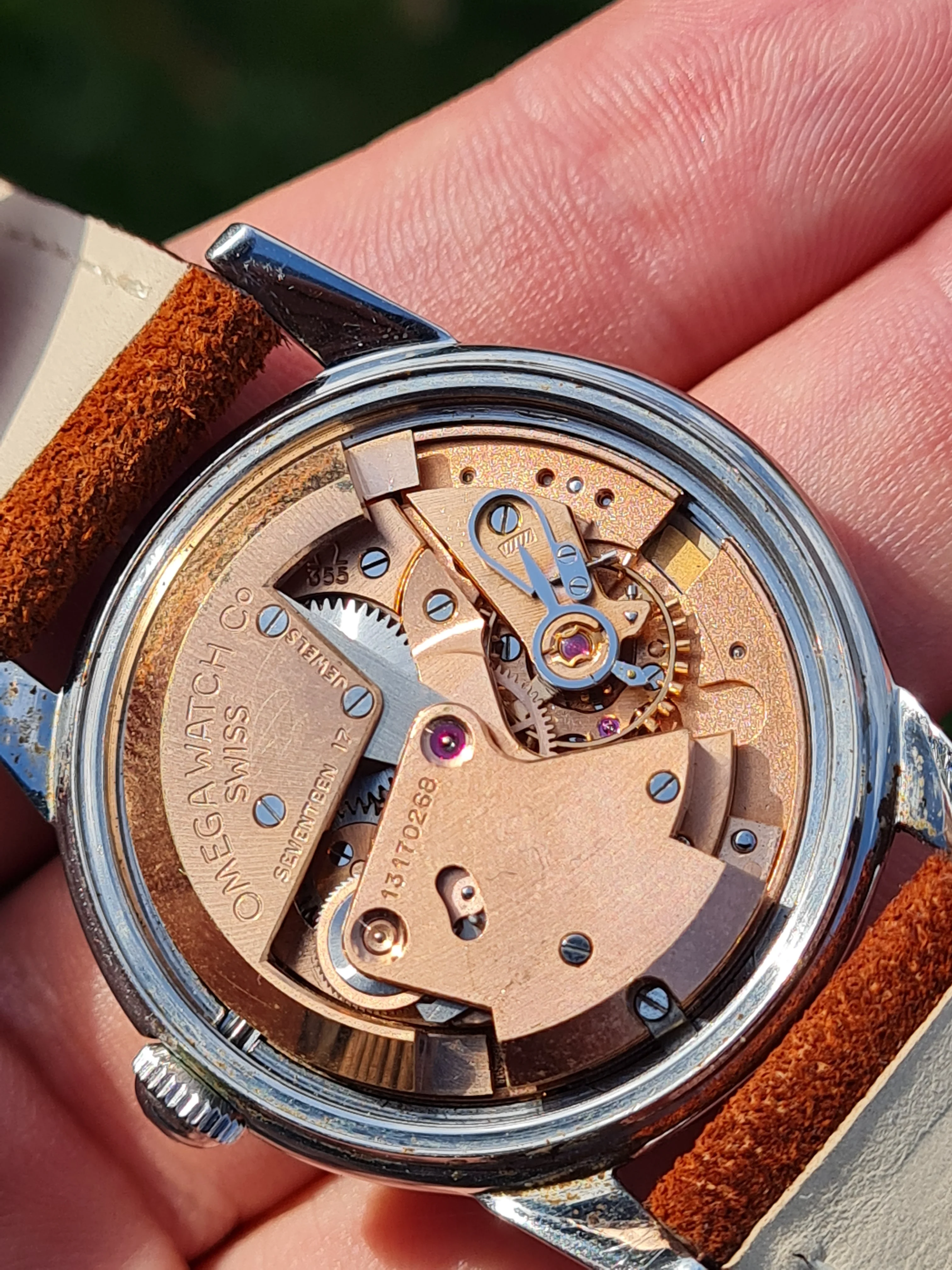 The movement is a nice red golden Omega 355 with a swan neck fine adjustment.