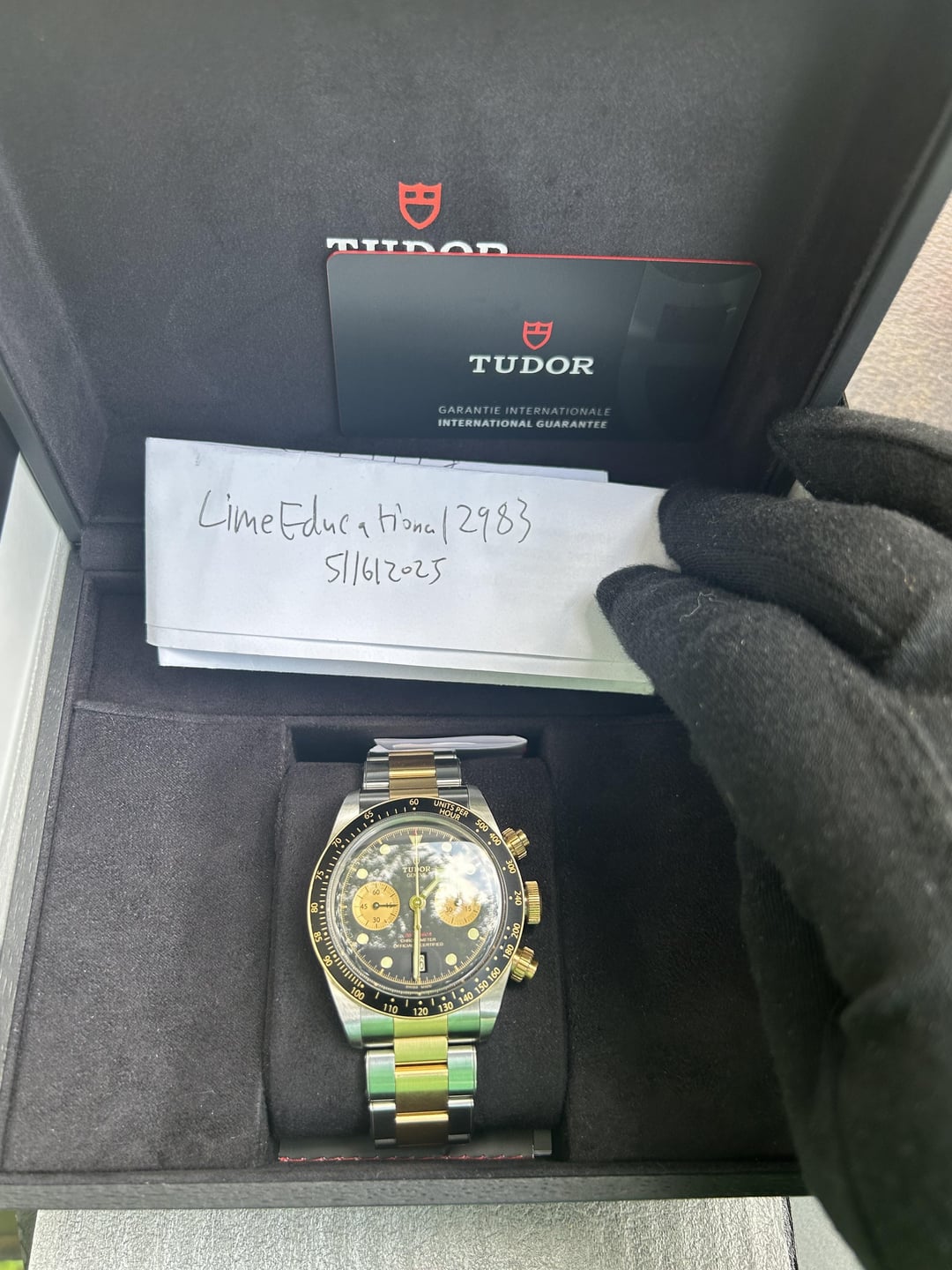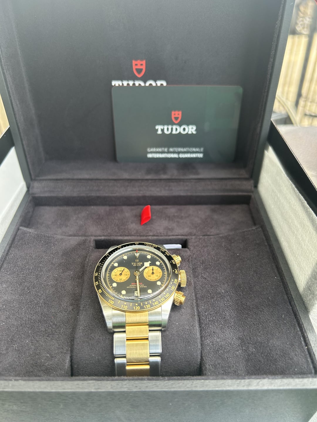 Up for sale is this beautiful two-tone Tudor Chrono 41mm 2022 full kit watch for sale. The bezel is in very good condition with the slightest of marks around the 180 part of the bezel. The case and bracelet are in very good condition with minimal signs of use. Watch comes as full kit with all links. Price: $3999 + label… This watch is located in Houston for local deals and buyer to provide shipping label or i can ship next day air fully insured within the US for $75.