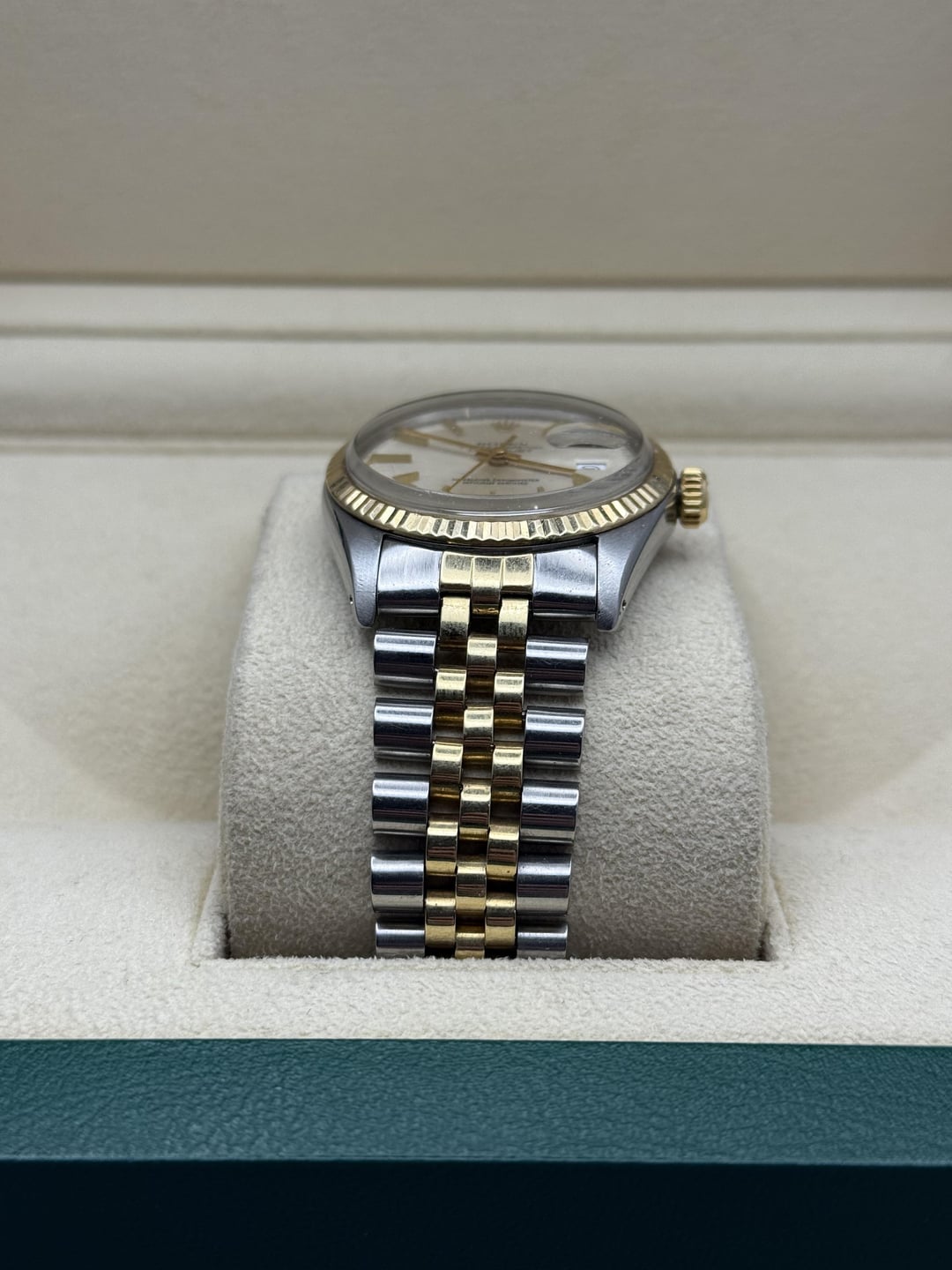 | 1983 Rolex Datejust 16013 Men's 36mm Roman Dumral White Dial Gold Bezel WI480 stryker_watches (141) |