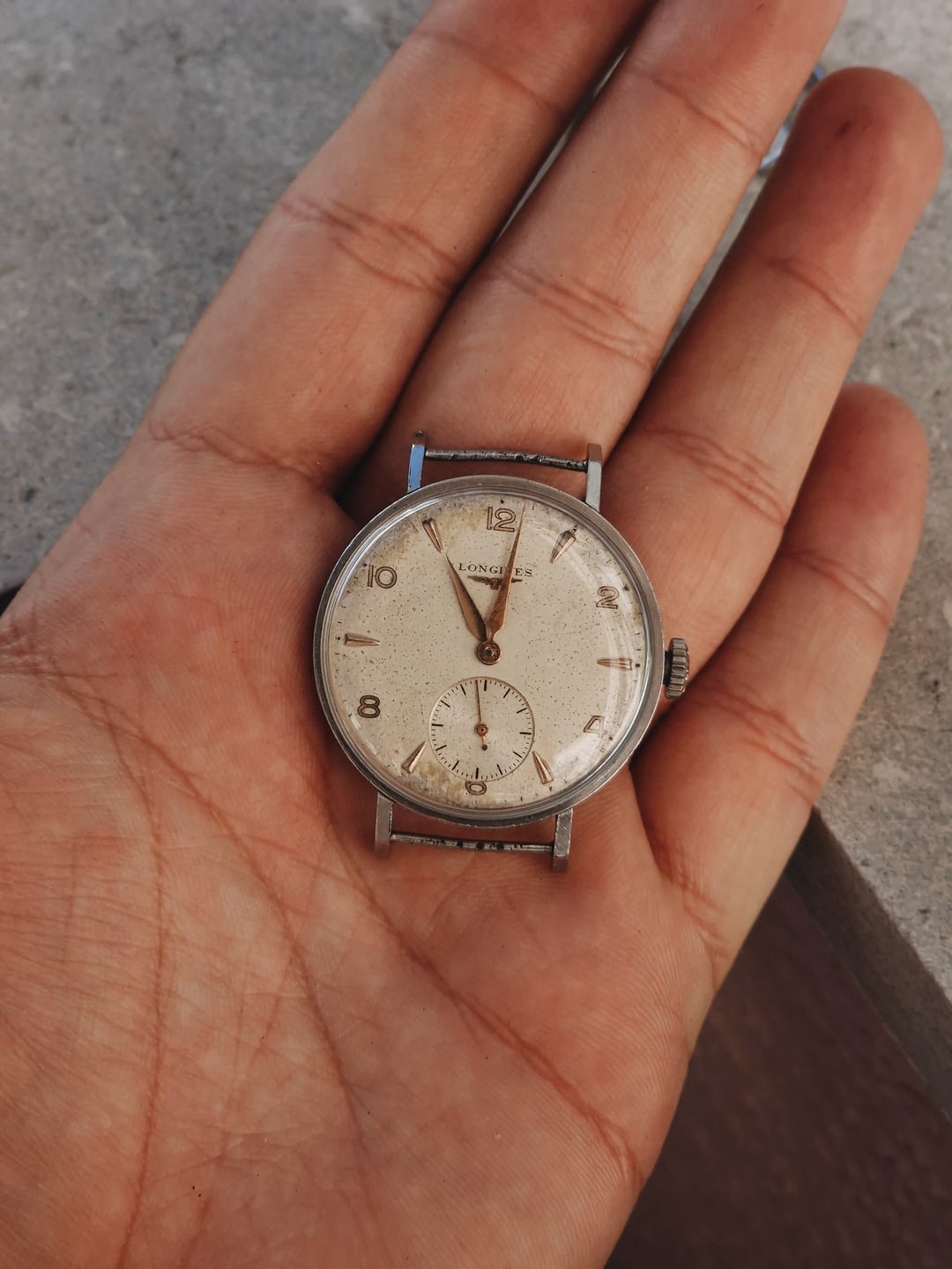 The Longines Calatrava is a popular vintage model, but have you ever seen one with fixed lugs? Meet the 23054 – a lesser-known reference from the 1950s. According to the serial number, it was made in 1952. The case measures 32.2mm, which at the time was the standard. It’s powered by the caliber 12.68Z, with 17 jewels, a beat rate of 18,000 bph, and a 41-hour power reserve. The watch also includes a signed crown and matching buckle. **Details & More** **Condition:** Very good for its age. Some minor scratches on the case and crystal, but nothing worth noting. Please see the pictures for a better description. **Case Size:** 32.2 x 40.5mm, with a thickness of 10.4mm and a lug width of 16mm. **Crystal:** Acrylic **Movement:** Longines 12.68Z, manual wind, 17 jewels. I don’t know its service history, but everything is working as it should. **Other Information:** * Includes a matching buckle. **Price:** Asking $275. Please add $20 for worldwide shipping. Payment methods include Wise, ACH transfer, Revolut, Bitcoin (On-Chain or Lightning), or PayPal G&S for buyers with solid references. Add +6% for currency conversion fees on the latter. I’m located in Portugal, but worldwide shipping isn’t an issue. Established seller with over 220 transactions – buy with confidence! Make sure to follow me on Instagram (@daily.worn) to check out the newest additions. [Pictures](https://imgur.com/a/bpZpBw7) [Timestamp](https://imgur.com/a/xuAF60l)