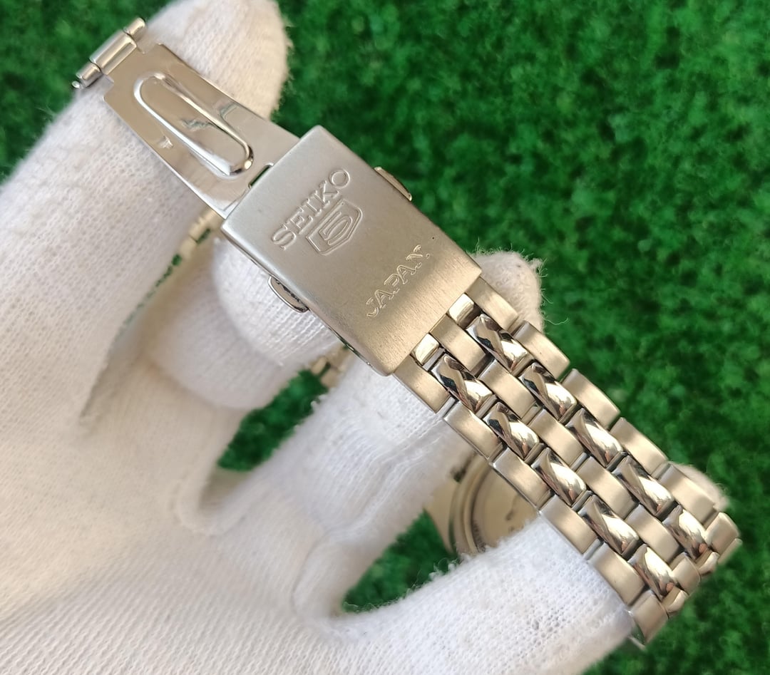 Seiko 5 Automatic Watch. Ref-7S26-02v0. Description and Features: Overall this is in good Working condition. This Seiko 5 Automatic watch features a classic design with a black dial, perfect for any occasion. A vintage men’s watch renowned for its durable Japanese automatic movement and classic design. Movement: Mechanical (Automatic). Features:12-Hour Dial, Day/Date. 21 Jewels. Functionality: Fully functional. Fold Push-Button Deployant. It will fit wrists of up to 20 cm. Please see the pictures carefully. SPECIFICATIONS: Movement: Automatic, Case Diameter, 36 mm, Thickness 10 mm, Lug Width 20 mm, Lug to Lug 41 mm, Watch only. Please comment before messaging. Payment Method: PayPal friends & family, Crypto, Payoneer & Binance Only. Shipping From FedEx Express Shipping. Price $125 Shipped. After payment confirmation the scheduled shipping time will be 2-3 working days.