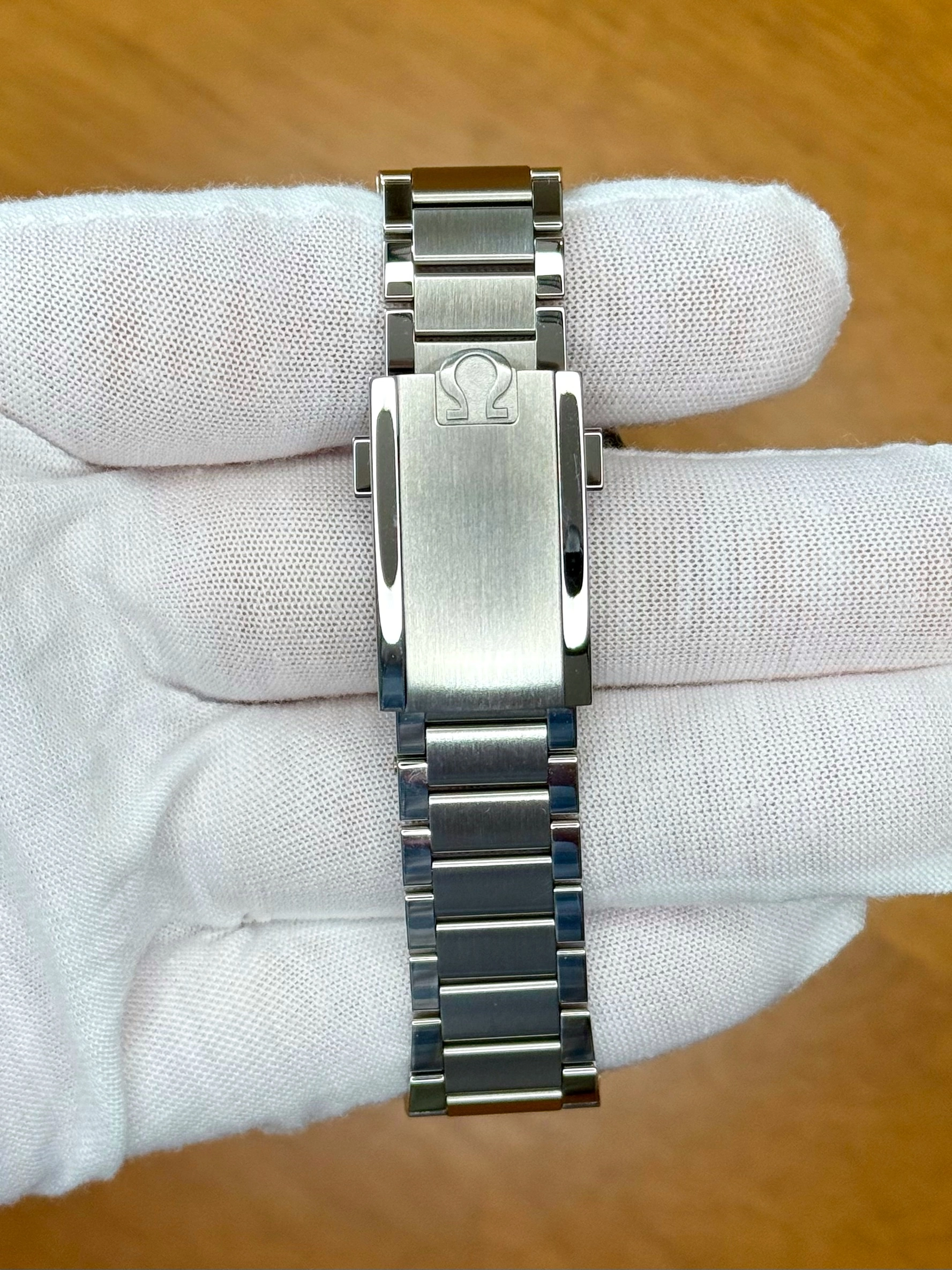 The watch is in excellent condition having only been worn a handful of times. The bracelet has been sized to my 6 ¾” wrist. It is possible that there are some imperceptible scratches from bracelet sizing, but I can’t see any. It includes the complete presentation box package (case, lunar lander watch stand, bracelet/strap change tool, loupe, patches, unworn cork/Velcro strap), outer box, shipping box, manual, tags, plastic tag/watch holder, unused cleaning cloth, cards, card holder, bracelet/strap swap instructions, limited edition certificate and bracelet links. Please see pictures – I tried to capture it in various lighting so that you could see its excellent condition. Please note that the serial number and limited edition have been digitally changed for security purposes.