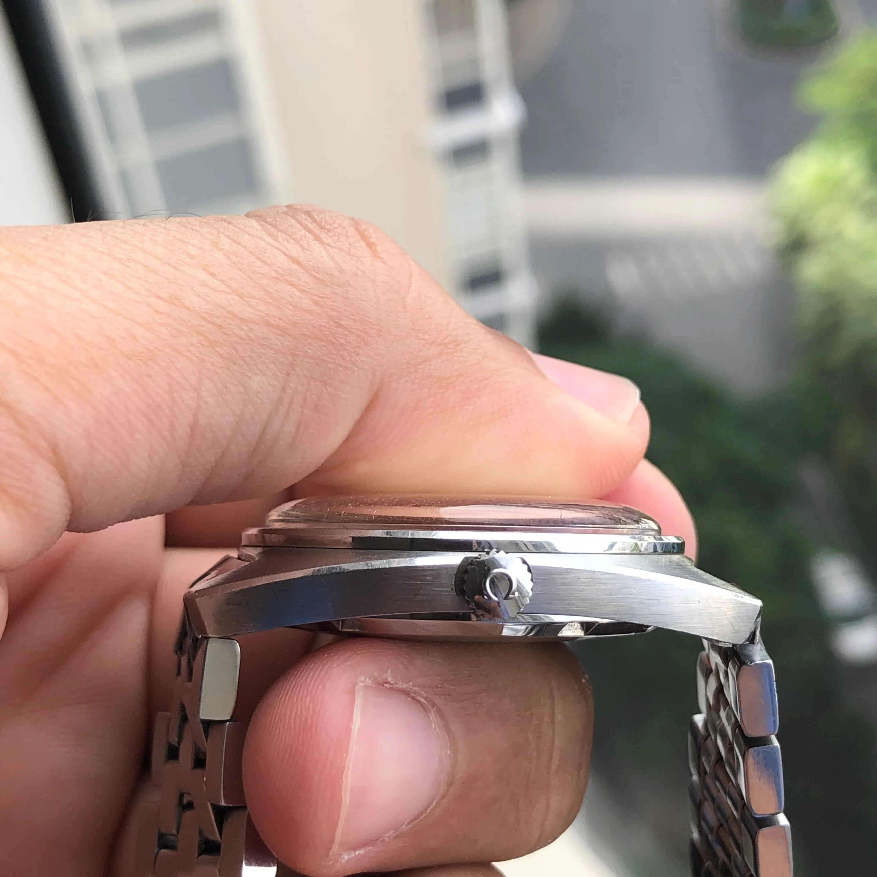 - Case: The diameter is 35mm without the crown. Original case in very good condition that retains original brushed surface. Original Omega knurled crown.