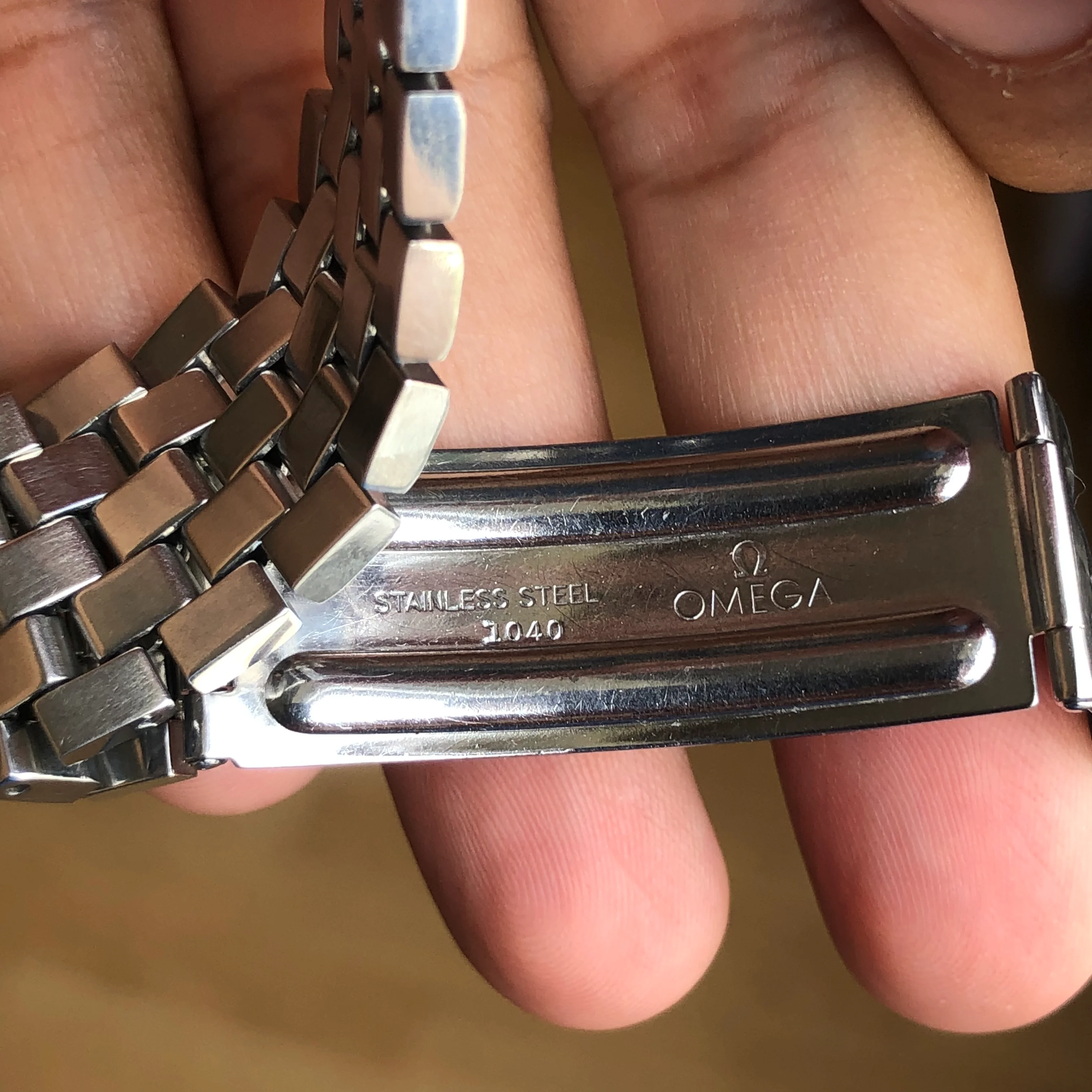 - Bracelet: Original Omega bracelet reference 1040 with 518 end-links in good condition, triple fold clasp featuring micro-adjust with Omega logo. The total length of the watch is 19.5cm.