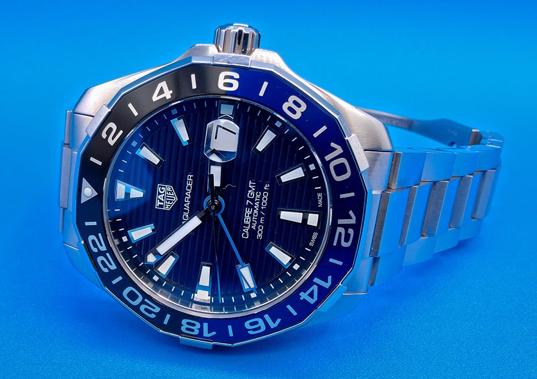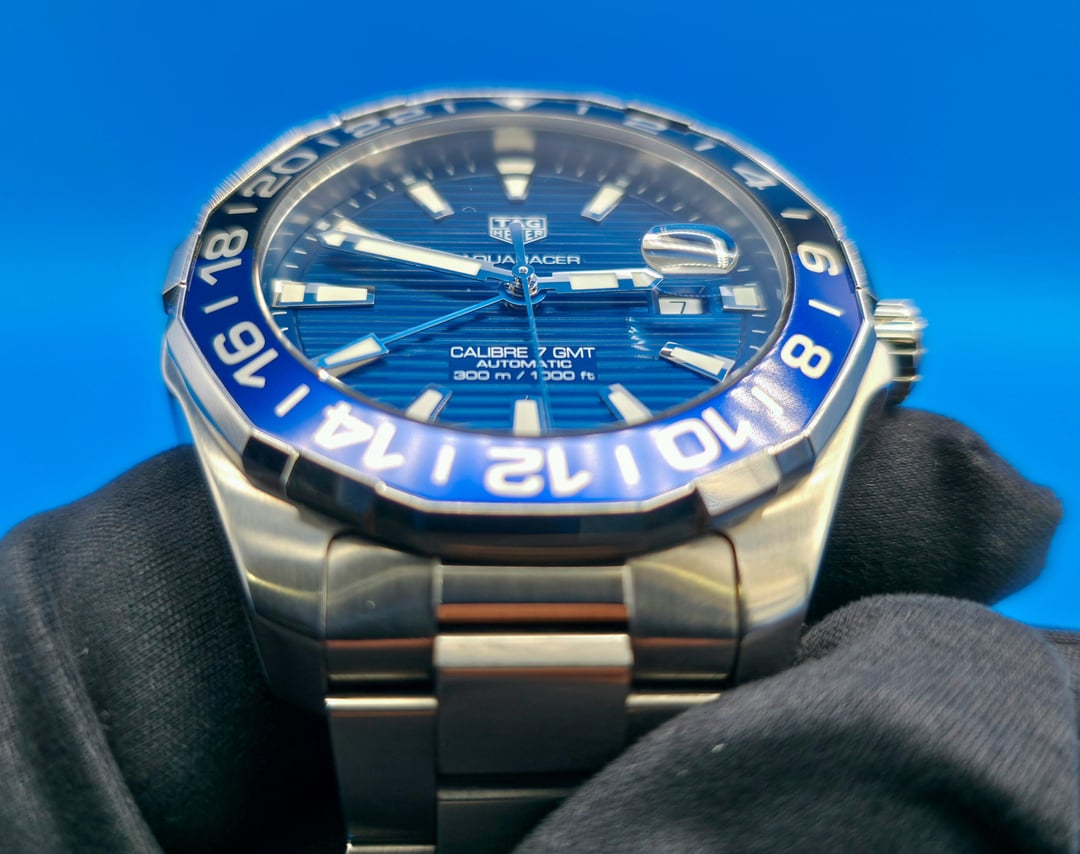 | TAG Heuer Aquaracer WAY201T "Batman" Calibre 7 GMT 43mm Blue Dial Excellent noorprestigewatchco (106) |