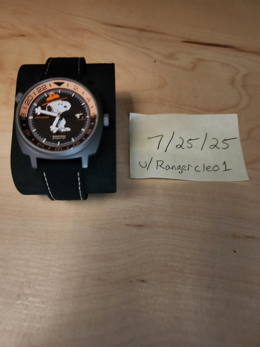 For sale- Bamford Beagle Scout GMT. Only worn a couple of times, so it is in almost pristine condition. Outer box, Snoopy box and papers. 40mm Lug to lug - 46.5 Titanium case 100m water resistance $1,999 including shipping, CONUS only. Zelle only. No trades.