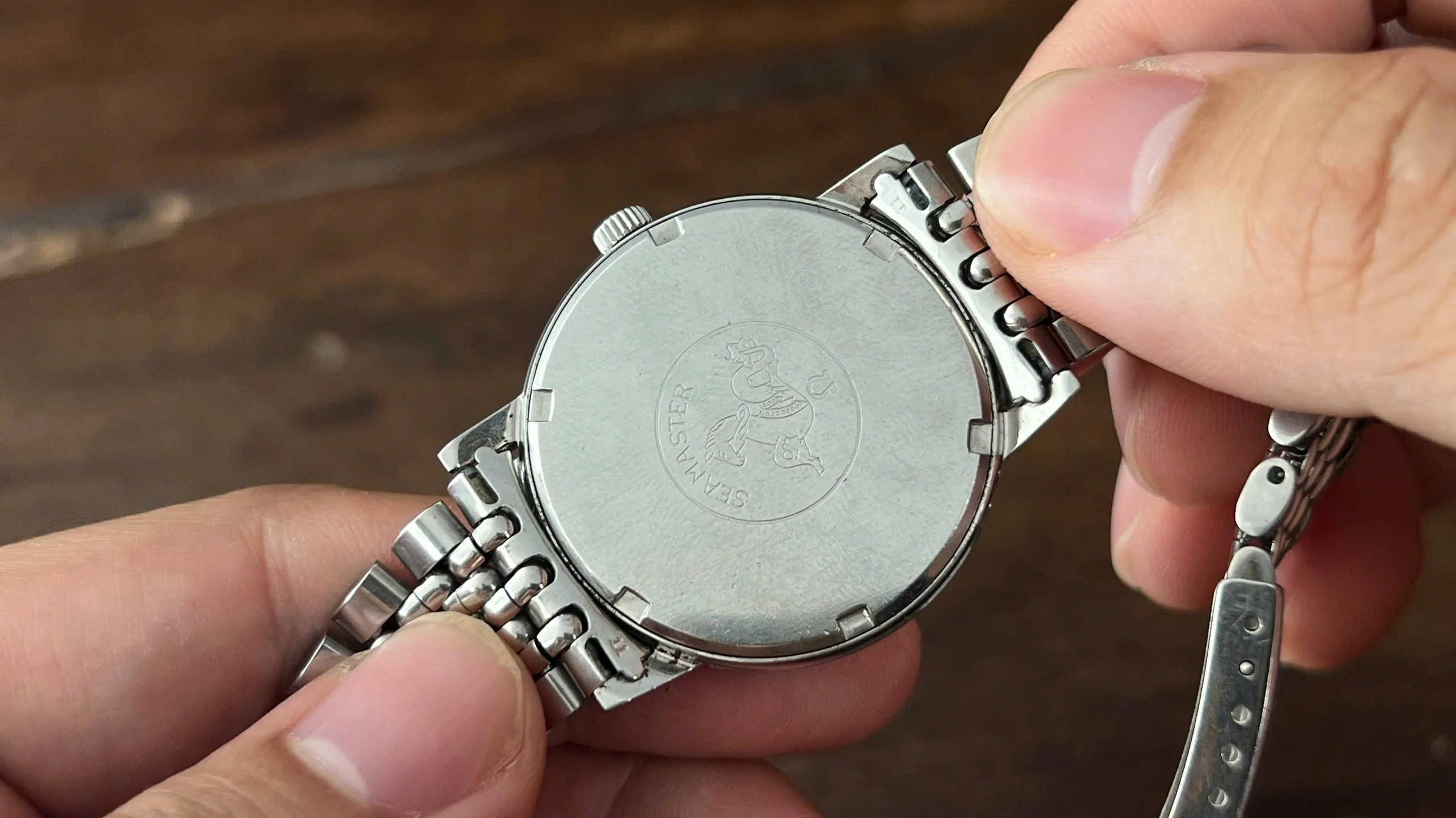 This example comes with the original Omega 5-row BOR bracelet (Ref. 1502 with 11 endlinks), fitting up to ~7.5" wrist. Head-only option is available as well.