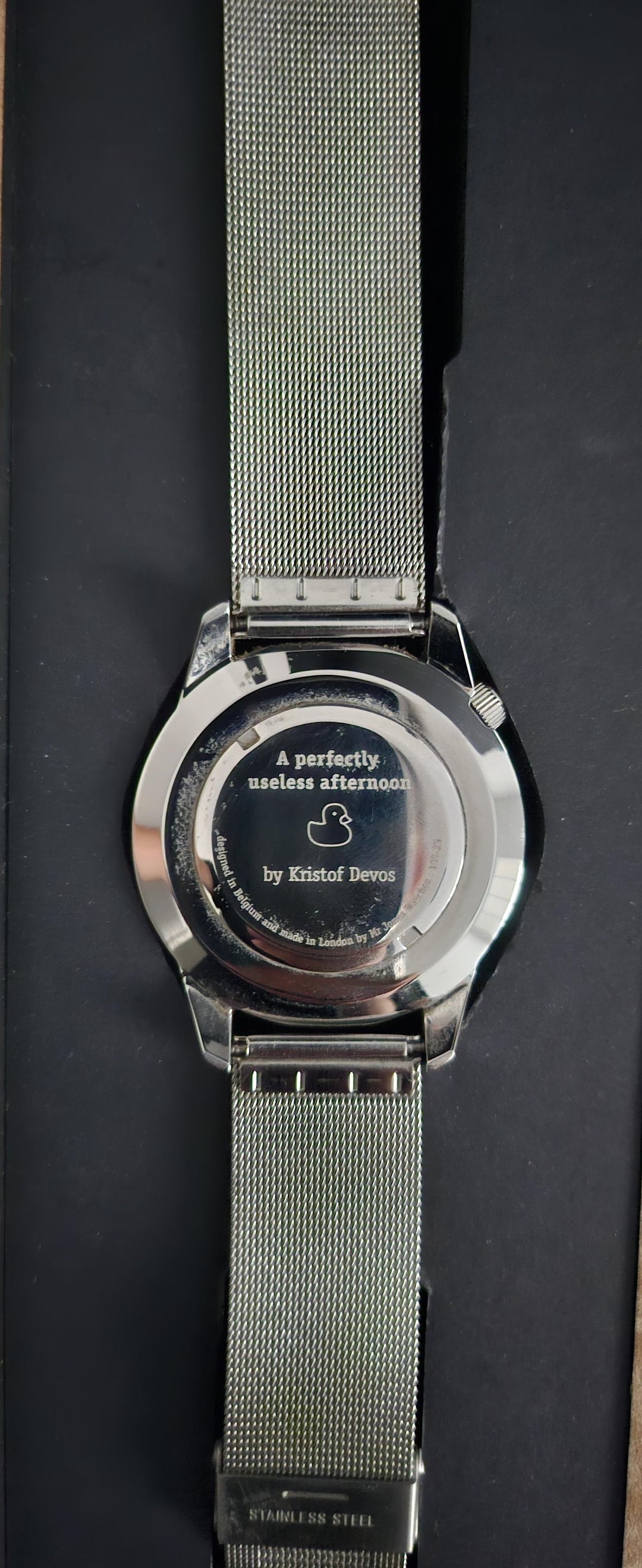 I'm selling my Mr Jones watch "a perfectly useless afternoon XL". Reason for the sale is because I don't wear it at all, I used to enjoy the size (45mm) but ever since I started wearing 38mm watches I don't anymore. It's scratch free and looks brand new. It's a mechanical watch. I live in the Netherlands and prefer shipping in the EU. Asking price is €800, which is around $933,84. This is the price ex. Shipping. Depends on the type of shipping you'd like to have.