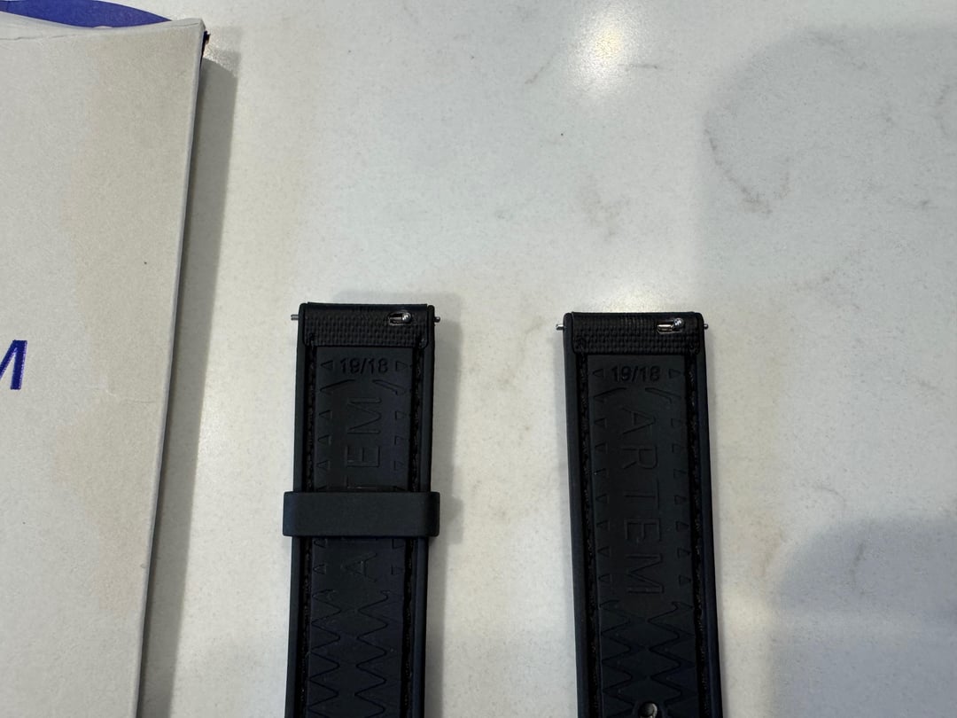 For sale is Artem Hydroflex Black 19mm watch strap. Straps are in excellent condition only used a couple of times. Brand: Artem Series: HydroFlex Hybrid FKM Watch Strap Color: Black with black stitching Lug Width: 19mm with quick release spring bars Price: $125 shipped (CONUS only) Payment: Zelle, Venmo, Paypal (+3.5% for G&S)