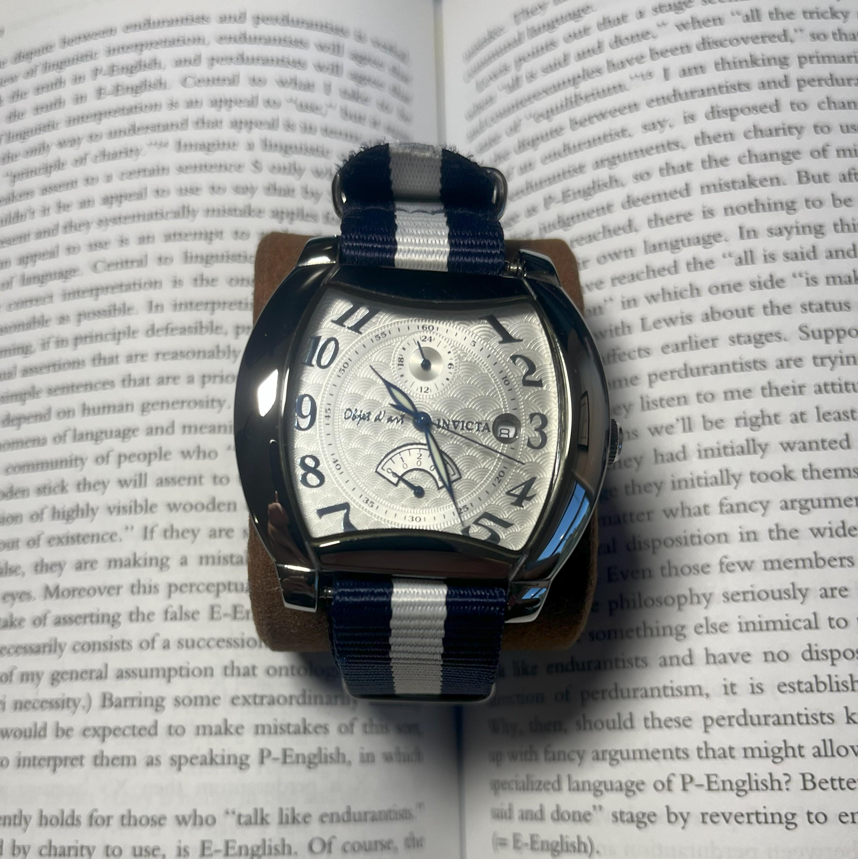 I purchased this watch this summer from a seller on eBay who claimed it was NOS. Since then, I've definitely worn it fewer than 10 times. Since then, I've also realized I have far too many watches, so I'm putting this up for sale! It's still in pristine condition. I will include the blue NATO and the original brown leather strap, as well as all original packaging. Asking $140 shipped to your location, and open to offers. Pics/timestamp: [https://imgur.com/a/invicta-ySaiAxf](https://imgur.com/a/invicta-ySaiAxf)