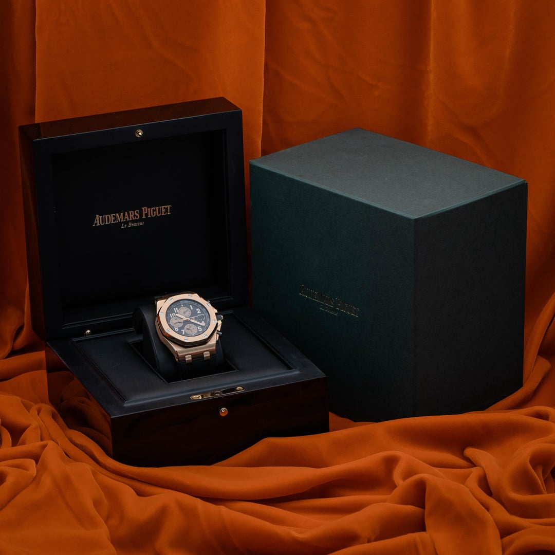 Audemars Piguet Royal Oak Offshore Chronograph “Half Brick” 2019 Ref: 26470OR.OO.A002CR.02 | 42mm | Red Gold & Black Dial | Watch, Box, & Digital Archive Papers Only Up for grabs is the iconic Audemars Piguet Royal Oak Offshore “Half Brick,” crafted in solid 18K red gold. With its bold black dial and unmistakable wrist presence, this piece is instantly recognizable and highly regarded among collectors. As an entry-level full-gold AP, it offers both investment potential and the perfect conversation starter for networking with fellow enthusiasts. Price: $40,197 • Payments accepted: Wire, Zelle, Credit Card (+3.3%) • Fully insured overnight shipping via FedEx. Condition and Details: Pre-owned condition! Crystal and Bezel are clean. Very light wear with a small fleabite on side of casing and a small scuff shown in pictures. The movement is running well and chronograph runs and sets perfectly. I make an effort to highlight any imperfections through macro photography rather than conceal them. Kindly excuse any dust, fur, or other unavoidable specks visible in the images. Trades: We happily accept trades of most luxury watch brands. Whether you’re looking to trade up, down, or structure a multi-watch deal, we’re here to make it work. Brands we accept include: Rolex, Patek Philippe, Audemars Piguet, Omega, Richard Mille, Tudor, Hublot, Panerai, Vacheron Constantin, and many more. Shipping: We ship fully insured via FedEx Overnight to your nearest FedEx location with hold for pickup for added security. FaceT1me/v1deo calls are welcomed for serious buyers — happy to answer any questions and showcase the watch in detail. Buy with Confidence: All watches we offer are 100% authentic and accurately described. We’re an experienced private dealer with a reputation for integrity, and references are available upon request. Our goal is to ensure a smooth, professional, and trustworthy transaction every time. Connect: 🤝 Contact info: https://kaiposcollection.shop 📍Located in Dallas, Tx Timestamp -> https://imgur.com/a/EW6gtaU