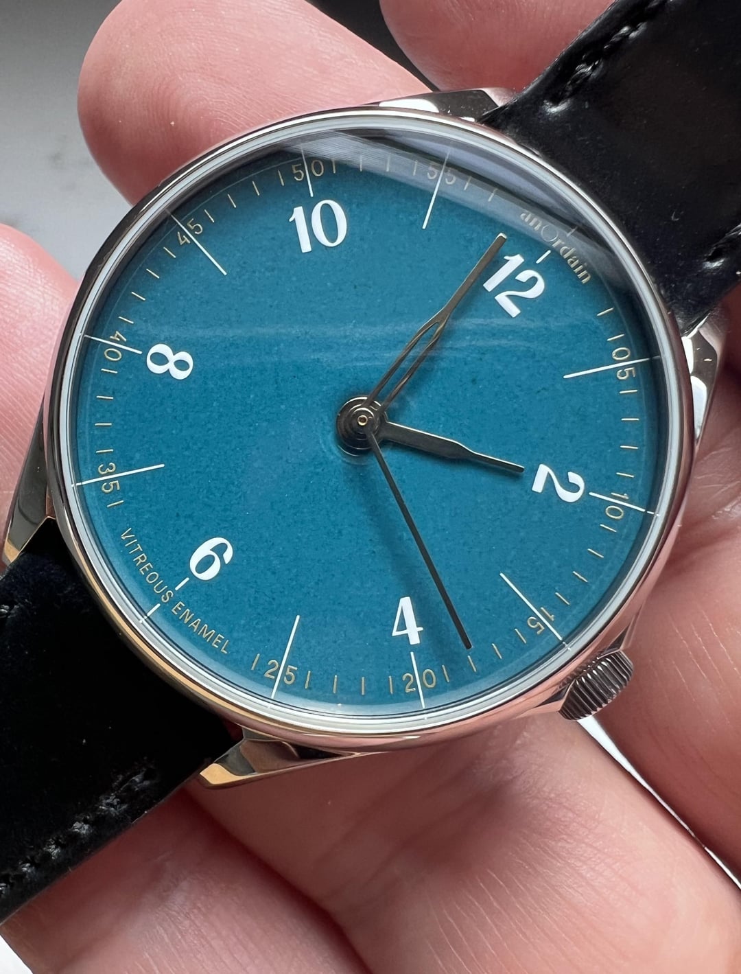Hey Watchexchange! Who wants to wait 4+ years for a build when you can get one now? Up for grabs is my medium sized anOrdain Model 1 teal dial. anOrdain’s vitreous enamel dials are some of the best in the game. IYKYK This has the SW210 manual winding movement. I included photos of the dial in a few different types of lighting to show how the dial color changes. **Condition:** Overall excellent and keeping good time. One thing of note is a scuff on the leather strap. **Scope of delivery:** Full set with October 2023 papers. 3+ years of warranty left. **Specs:** Reference number: Model 1 Case size: 38m Lug-to-lug: 46mm Case thickness: 11mm Water resistance: 50m **Price:** $3300 shipped to your local FedEx Office hold location. **Methods of payment:** Zelle or bank wire only. **Trades:** Not at this time. **References:** Hundreds of successful transactions in watch trading. See my eBay account under the same name. Many references in Facebook groups, watch forums, and on WUS. **Timestamp:** [https://imgur.com/a/75o0s24](https://imgur.com/a/75o0s24) **Photo album:** [https://imgur.com/a/gxlzxx3](https://imgur.com/a/gxlzxx3)