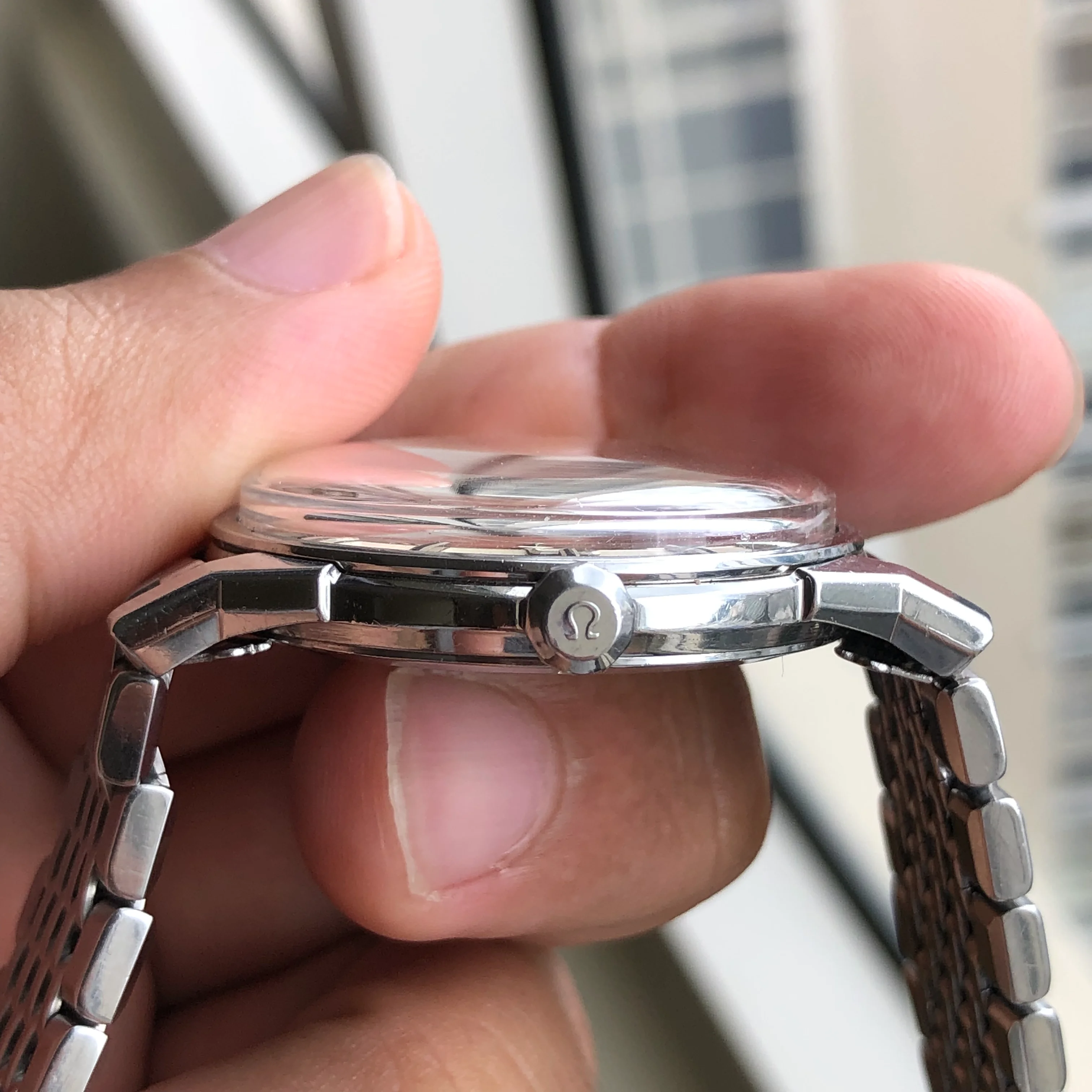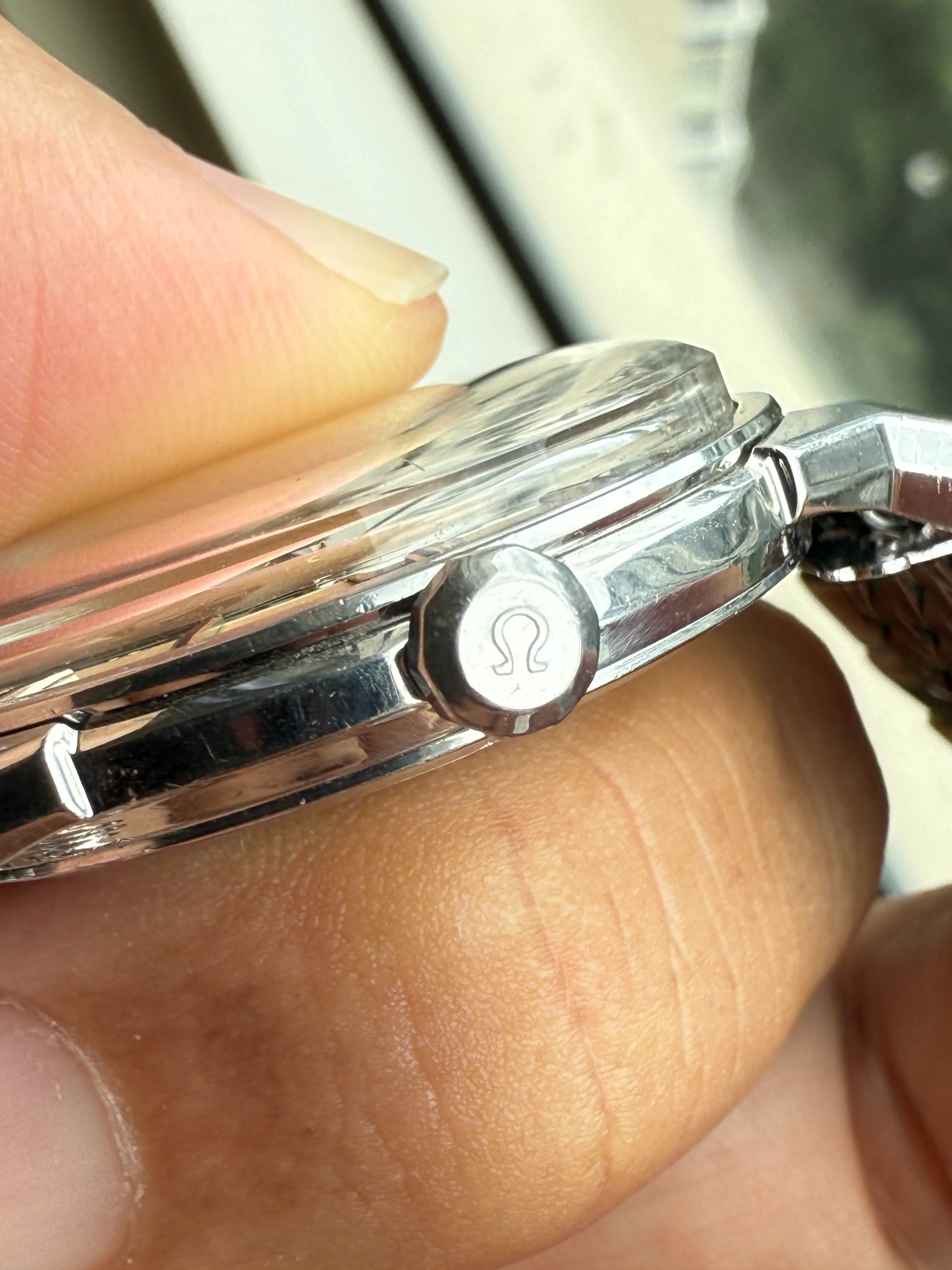 - Case: The diameter is 34.5mm without the crown. Original case is in good condition. Original Omega decagonal crown.