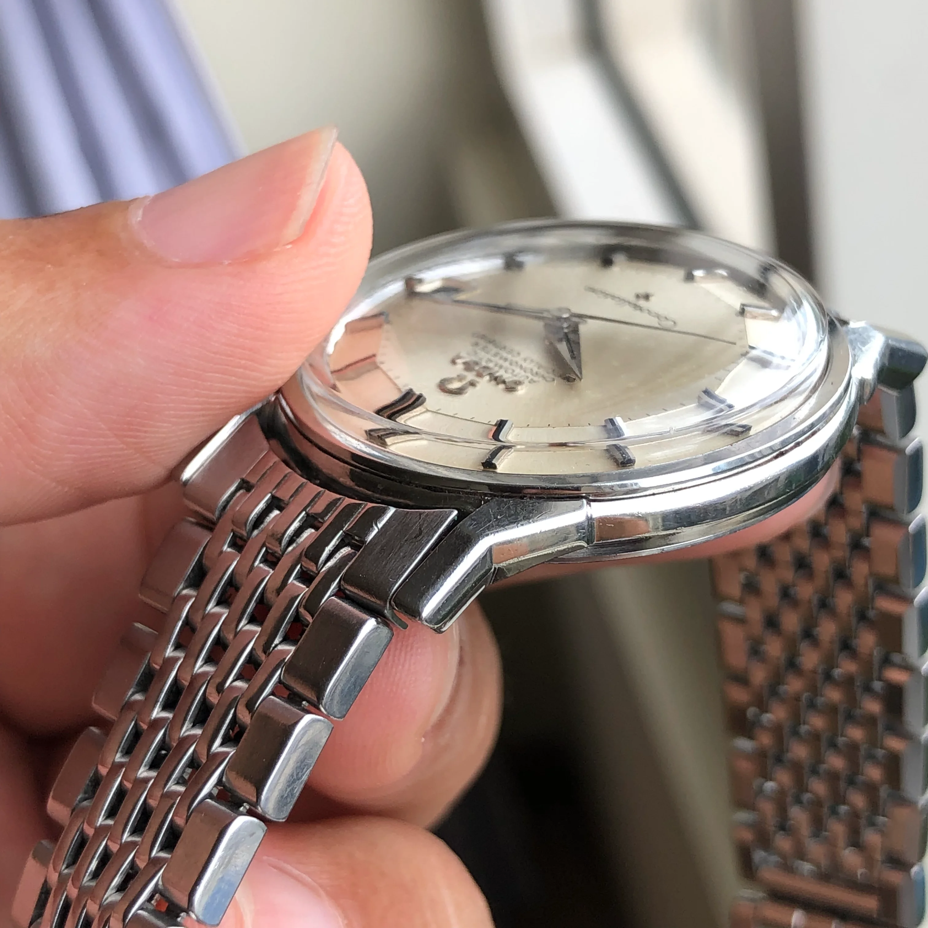- Dial: Original piepan dial with evenly-distributed small spots, onyx inserted hour markers; dauphine hands; prints, hands and hour markers are all good.