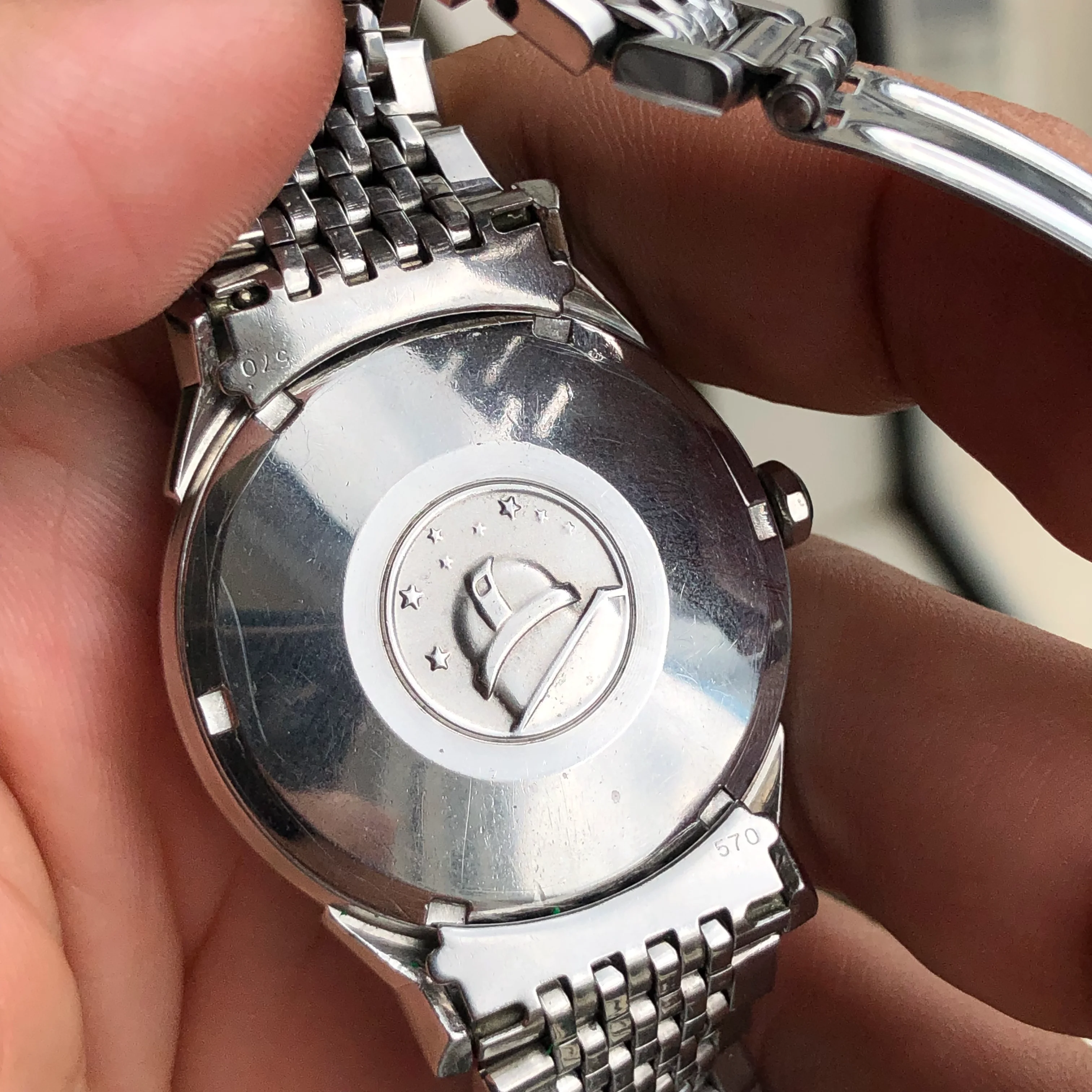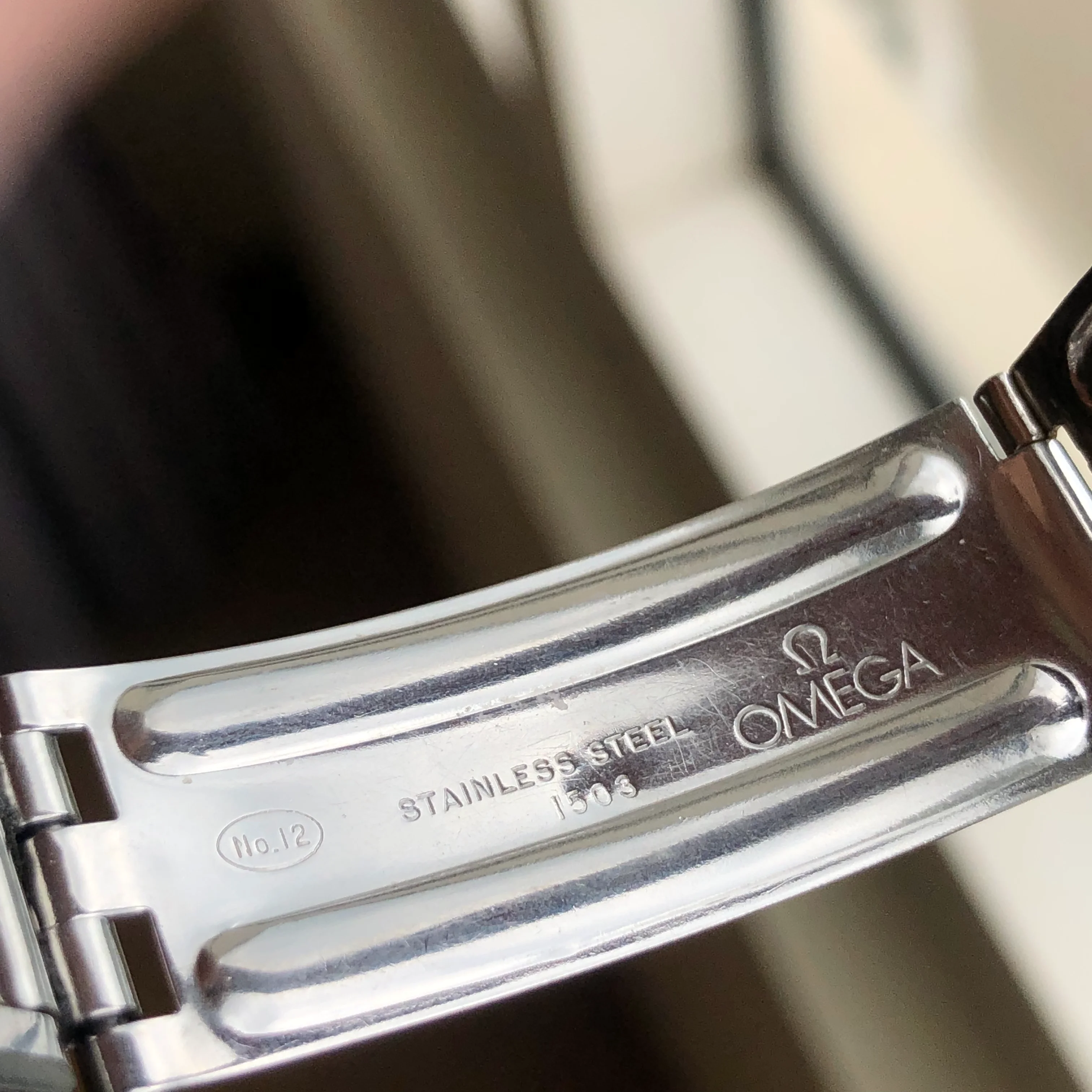 - Bracelet: Original Omega bracelet reference 1503 with 570 endlink in very good condition, triple fold clasp featuring micro-adjust with Omega logo.