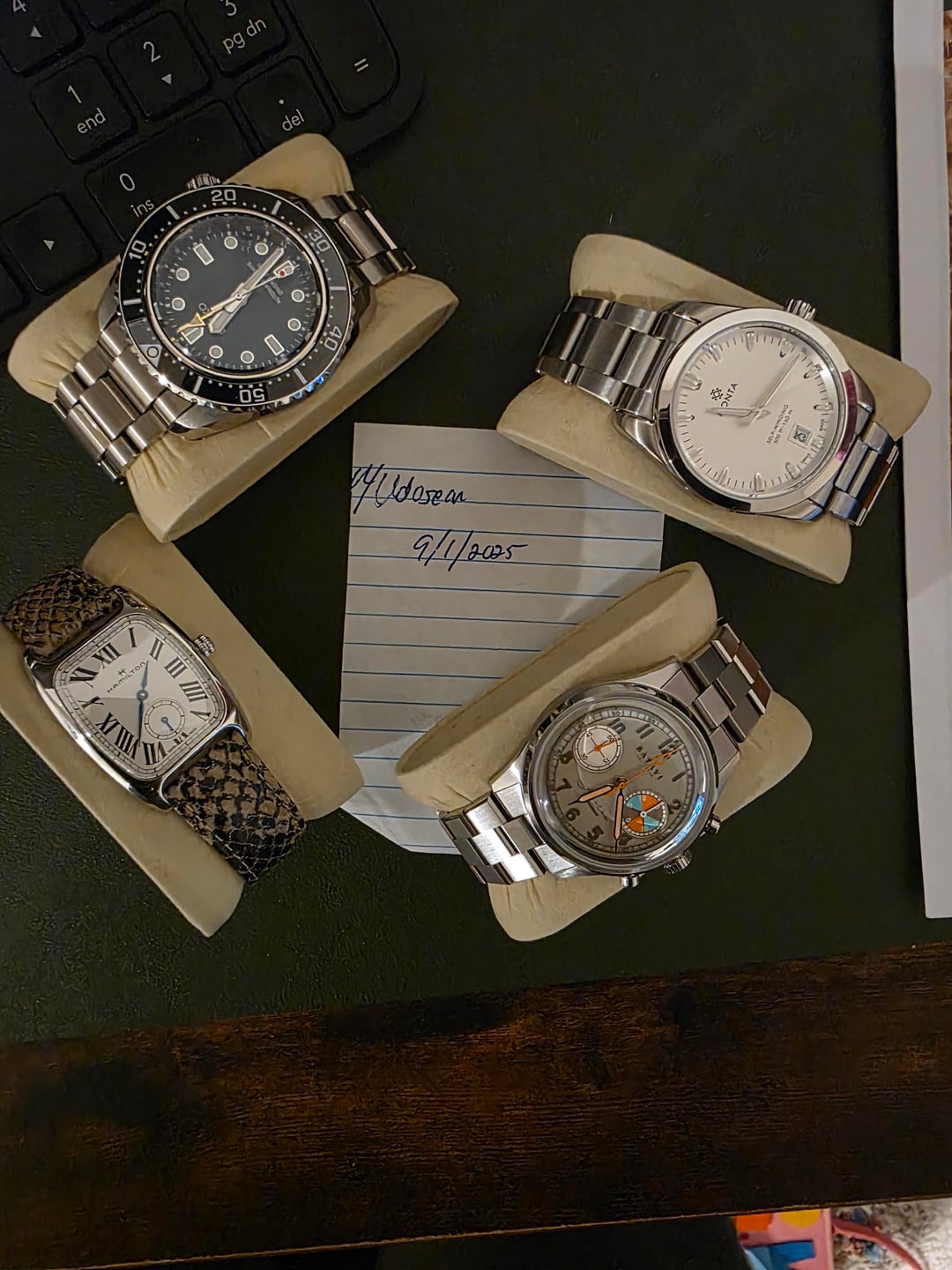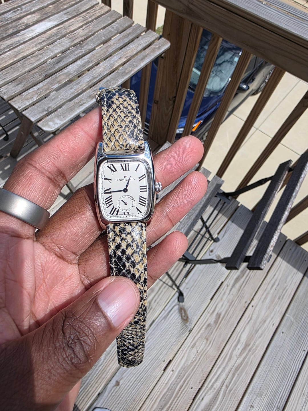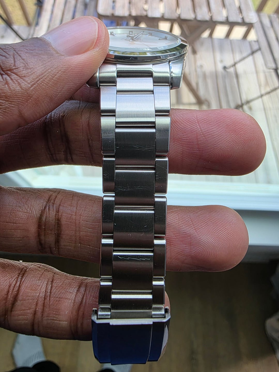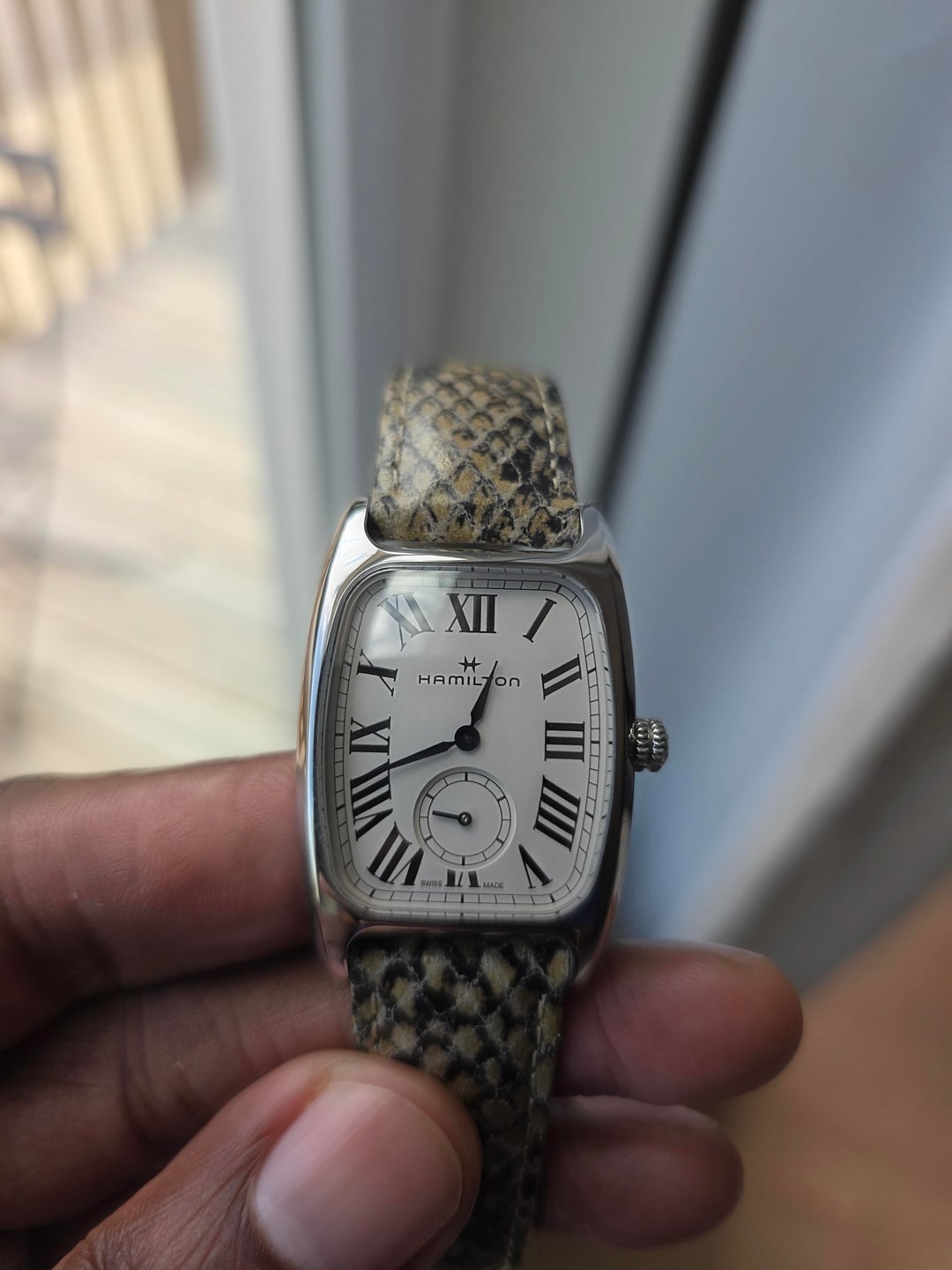 Hey folks! Moving a few pieces. Open to trades, but mainly looking to sell. Details below: --- Monta Noble – Opaline Dial – $850 (negotiable) Overall good condition. Small knick on bezel around 5 o’clock, hairlines on bracelet (shown in pics, can send more). Monta Caliber M-22 automatic, 38.5mm case, 100m WR. Box included. --- Batavi Marina Chronograph – Sand Dial – $625 Great condition. 39mm case, Seagull ST19 mechanical chronograph movement, sapphire crystal. Box and papers included. --- Hamilton Boulton Quartz – $299 Great condition, quartz runs well. Comes on aftermarket strap pictured. No box/papers. --- Seiko MM200 GMT – Limited Edition JDM – $900 Great condition. 42mm case, Seiko 6R54 GMT automatic, 200m WR, sapphire crystal. Includes StrapX Pro fitted rubber strap. Box and papers included. --- Payment: Zelle or PayPal F&F Trades: Open — feel free to shoot offers.
