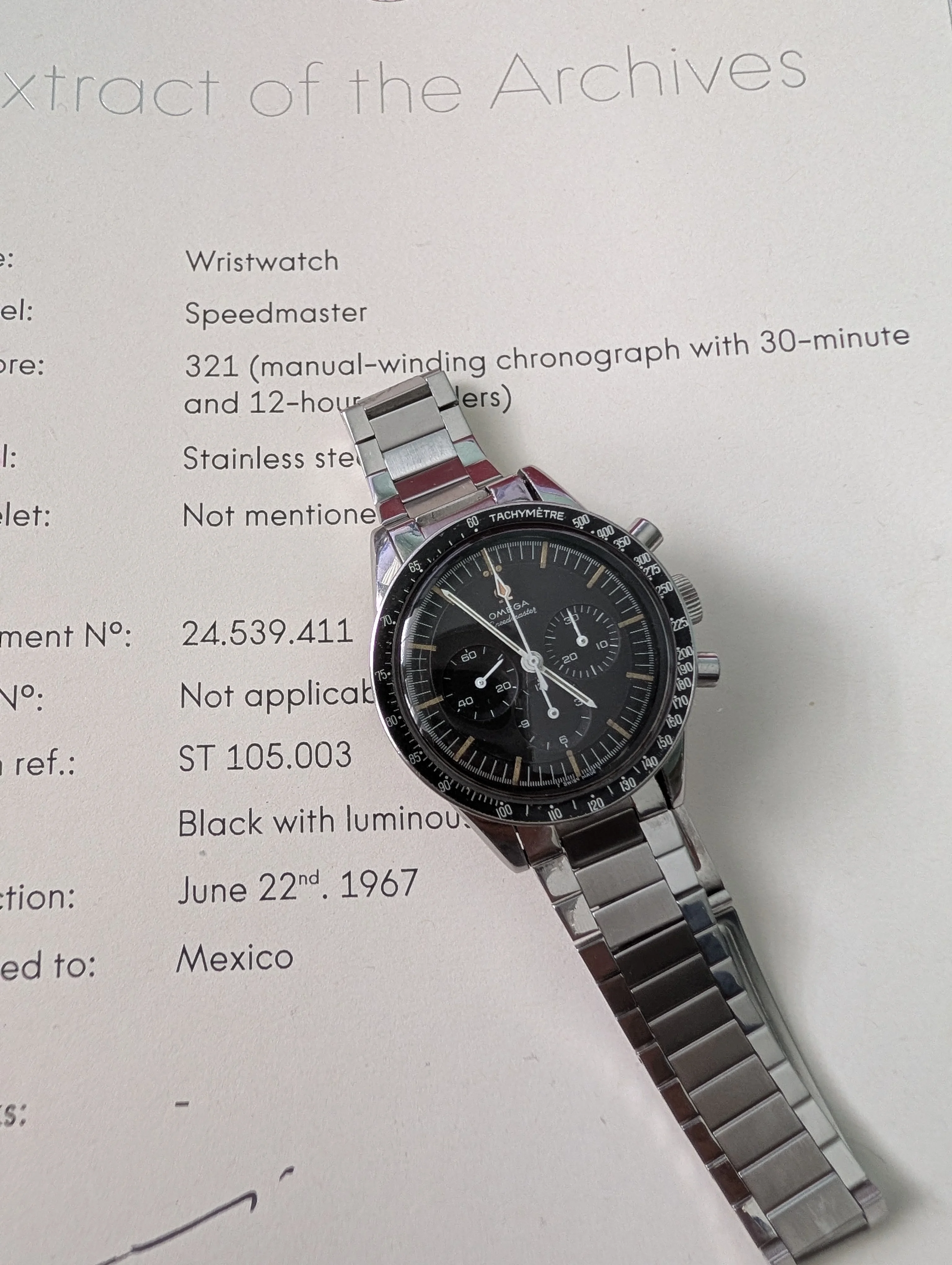 I am offering this Speedmaster for sale at $6,750 OBO. It includes a Extract from Omega (from 2014). I purchased it in 2015 from another member here, as he reached out to a WTB post. I am located in SW Florida.