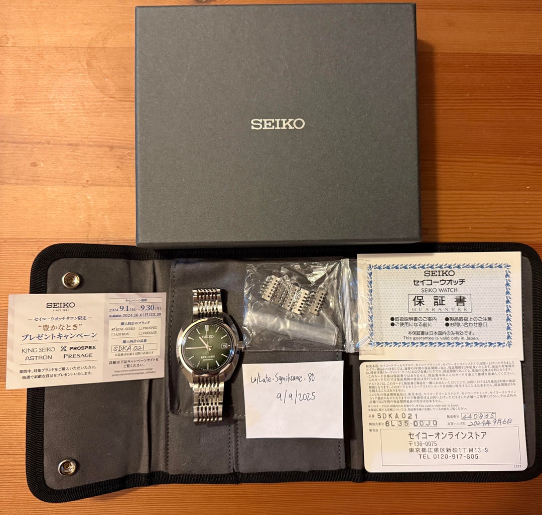 ![Thumbnail [WTS] 2024 King Seiko Forest Green SDKA021 (SJE113) 39mm ($1800 shipped US 🇺🇸) 3](https://cdn-cf.watchpatrol.net/120x120/img/full/ba4abe1a24b0a9f13f5eb75adcc46b2332e744c8.jpg)