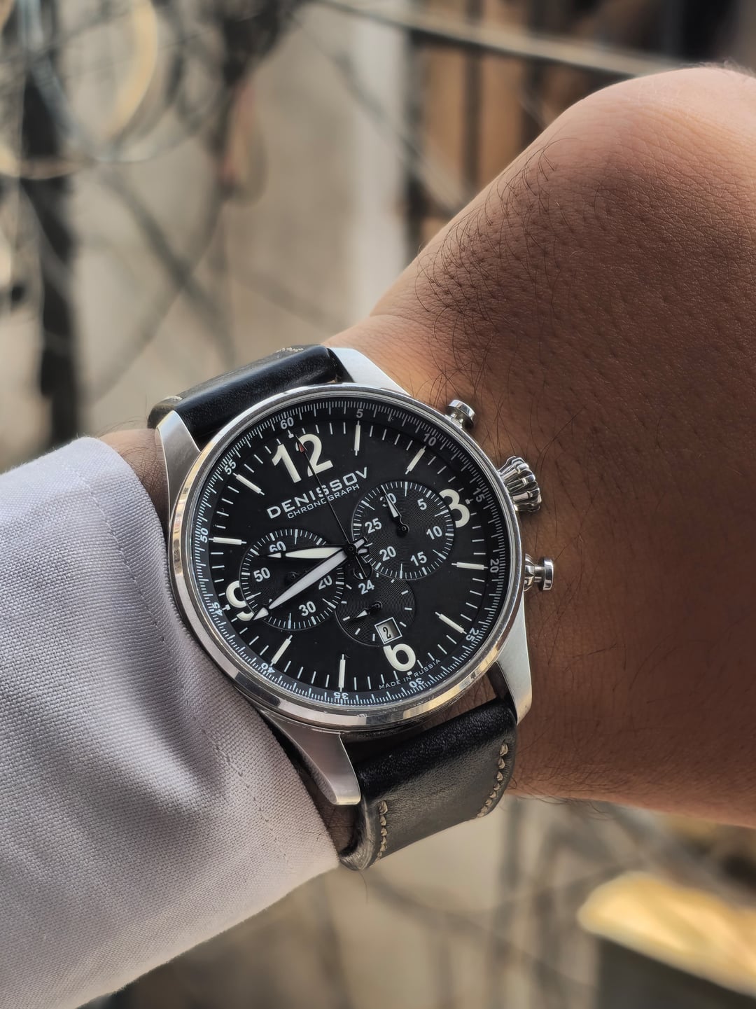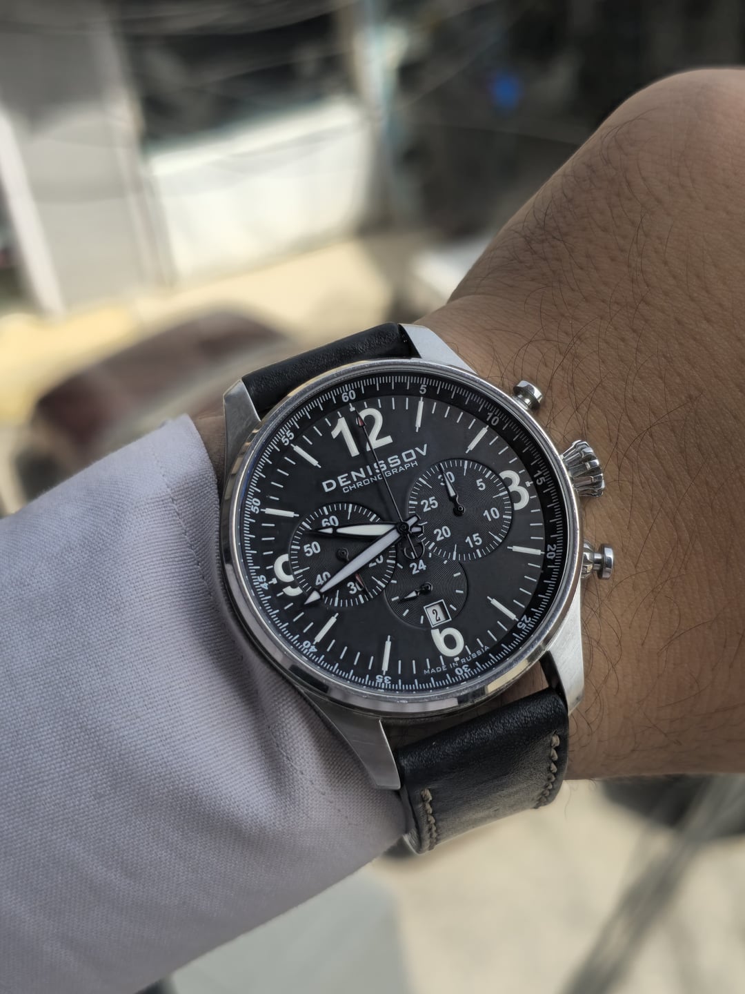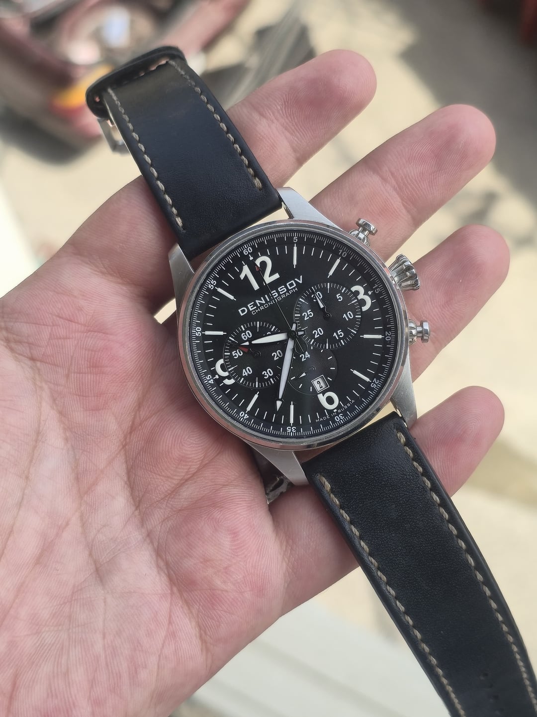 Denissov Chronograph Barracuda, a mechanical chronograph known for its military- inspired design and the use of well kbown Russian Poljot 31681 movement. Movement: Poljot 31681 mechanical chronograph, tri-compax with date,manual winding. Case size is 46mm. Strap is original but the Buckle after market. Limited to only 999 pieces. This is #941 Online comps are 700+usd My price 450usd shipped Feel free to ask any questions.....