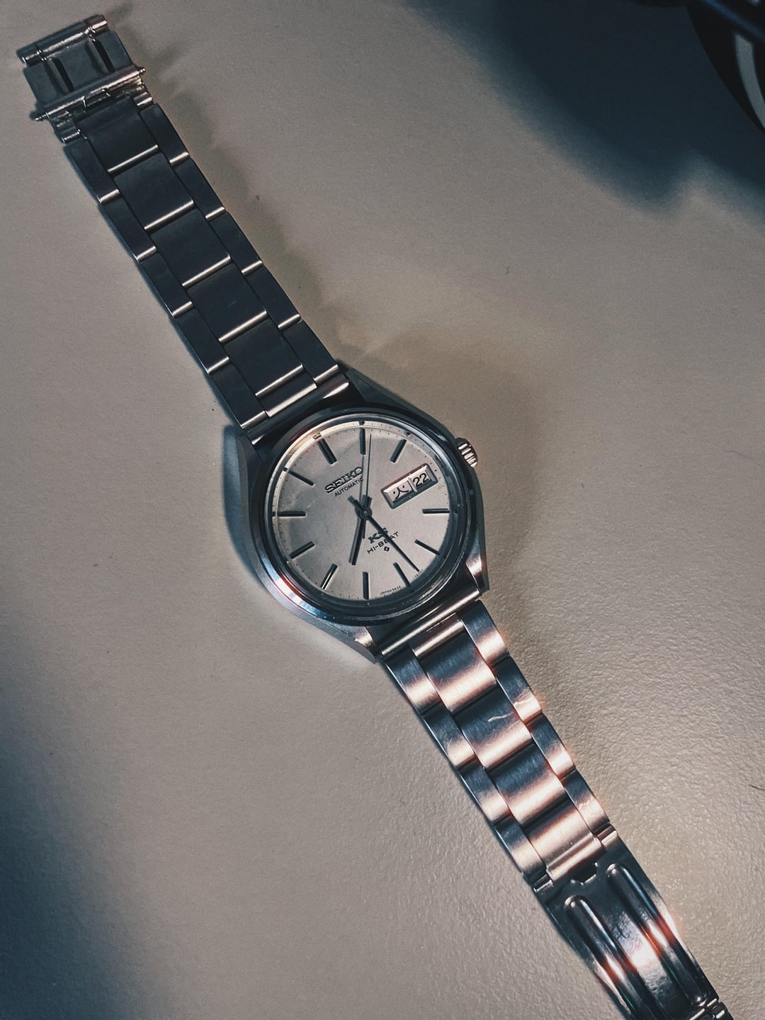 This is my 3rd attempt at Reddit. Watch business has been going good which is why my stock is constantly increasing, hence I'm here. I love a Seiko with a linen dial, especially when it's the quality King Seiko. It has the original crown, looks ready to daily and with the accuracy of the movement, is. The bracelet is short on links, but can fit most wrists (even my 18+ cm / 7+ inch wrist). The day has Kanji and English on it, very cool. Movement: Seiko 5626 **Automatic** Width: **37mm** without the crown Case: **Stainless Steel** Strap: Non **OEM Bracelet** (18.5 / almost \~7.5 inches) Origin: **Japan Made** Price: **299$** \- Insured Shipping Worldwide **FREE**. **PayPal** preferred but would set anything you'd prefer. This is not a convenience store, nor your local Authorized Rolex Dealer, **EVERYTHING** is negotiable. If there are any questions, feel free to comment or PM me. We can even get into a call if you'd like, no problem! Good luck and happy hunting.